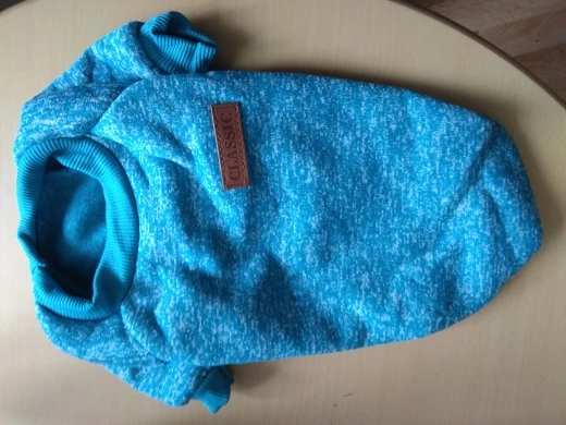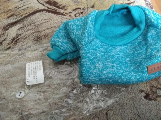 Посылка доставлена в целости и сохранности. Цвет как на фото продавца. Но вместо заказанного размера ,,М,, продавец выслал размер ,,L,, и мой Йорк в 2 ,2 кг, шея 30 см, длина по спинке 30 см ,,утонул,, в этом свитере. Использовать невозможно!