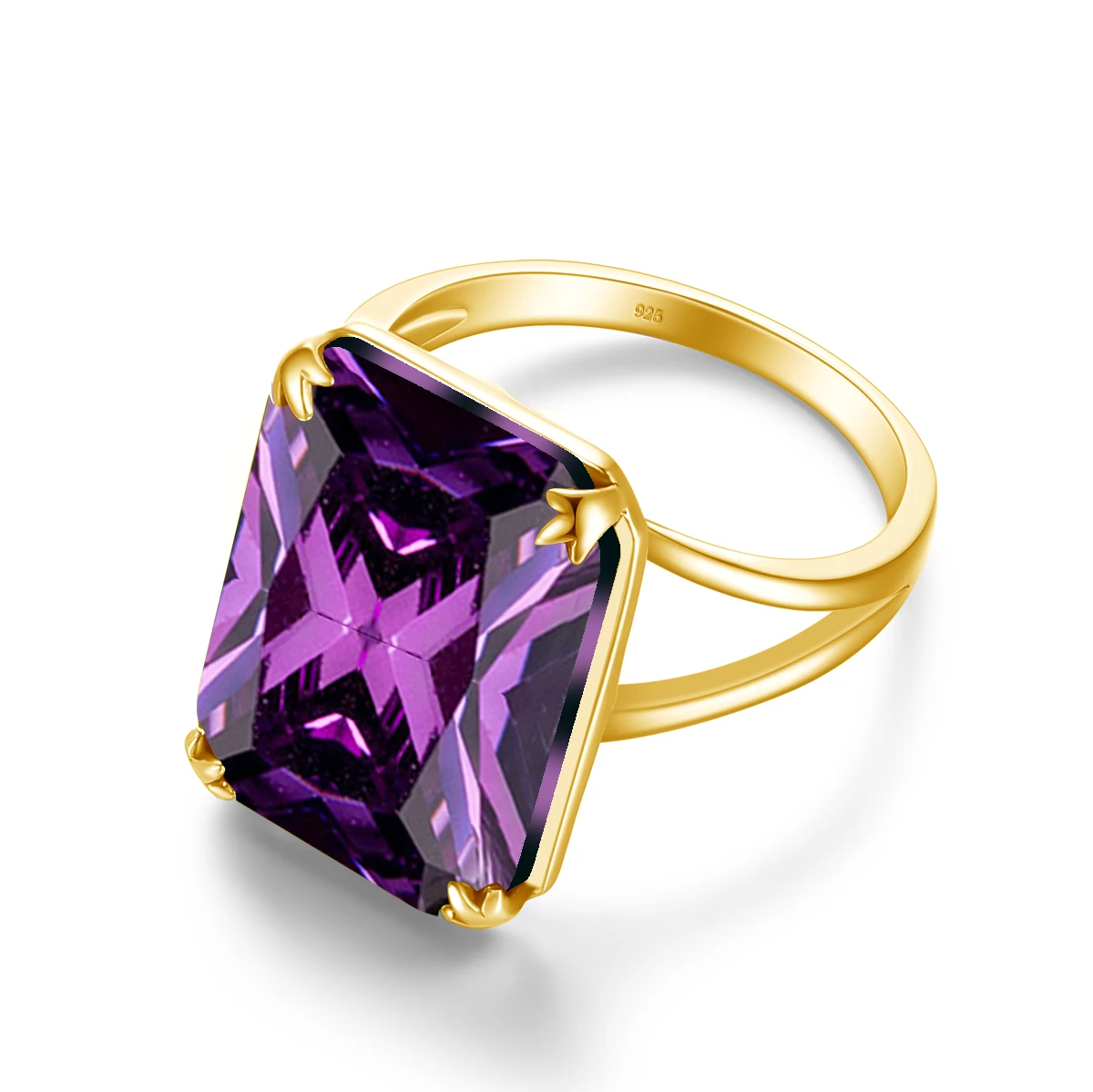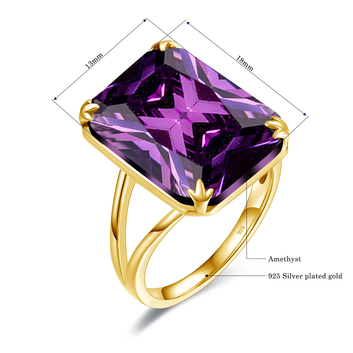 14K позолоченный женский аметистовое кольцо камни реальные 925 стерлингового серебра на не сужающемся книзу массивном кольца прямоугольника блестящие ювелирные изделия подарок для женщин