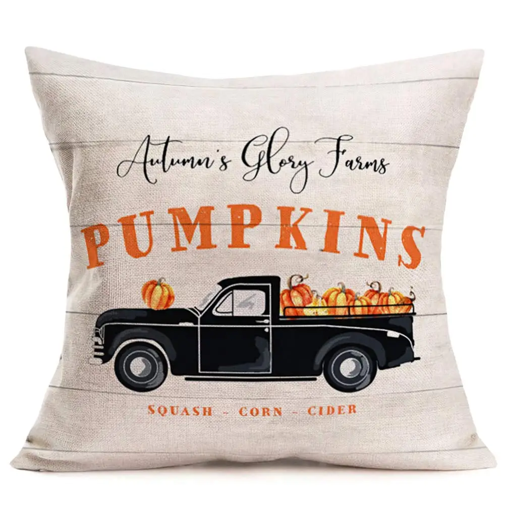 Декоративные наволочки в винтажном стиле с изображением тыквы и черной грузовика
