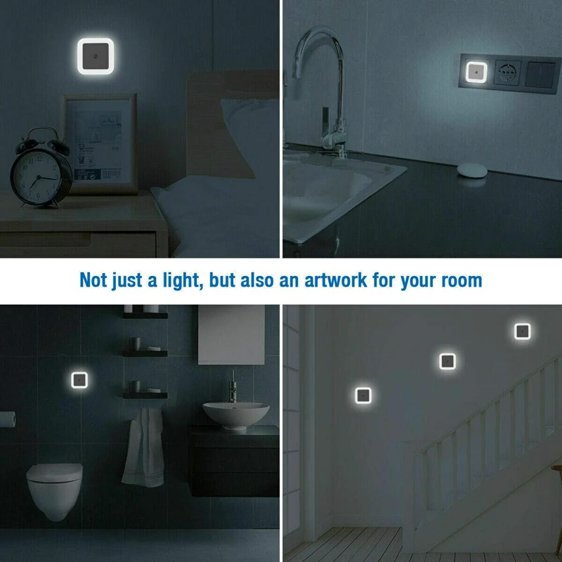 Беспроводной светодиодный ночник с датчиком, квадратные мини-светильник 60 мм, с европейской и американской вилкой, для детской, спальни, гостиной, прикроватный светильник для коридора