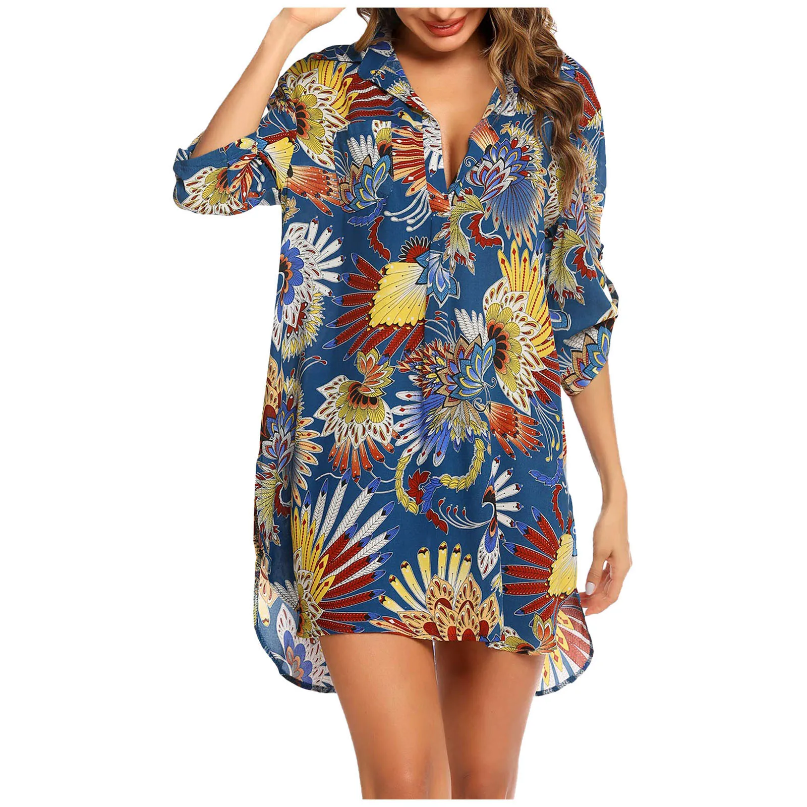 2022 Повседневный шифоновый кафтан с принтом, Пляжная накидка, кардиган, шаль, купальник, женский летний купальник, парео, накидка, выход на пляж