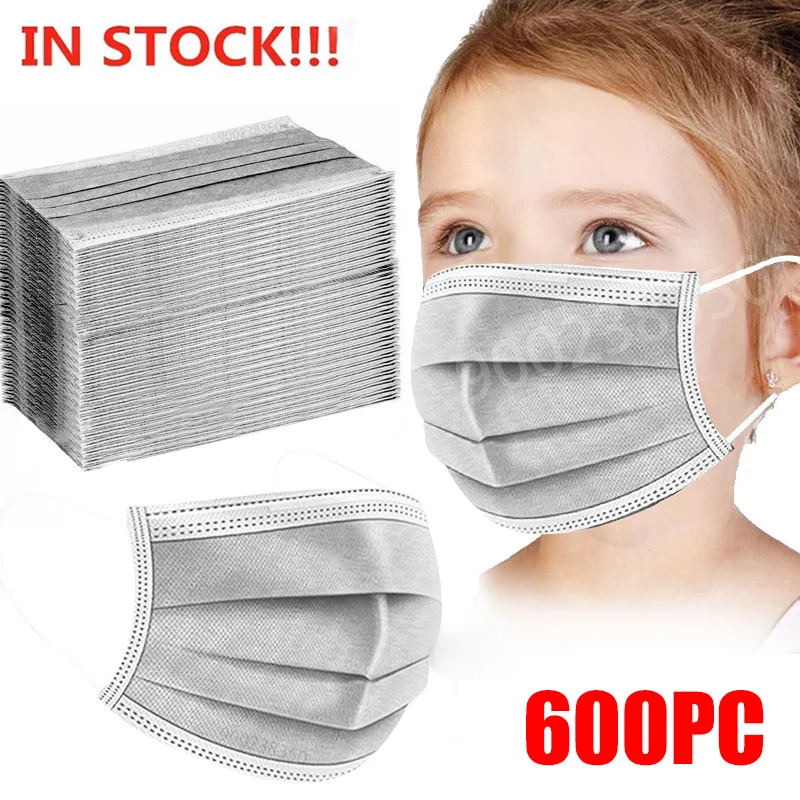 Маски детские одноразовые, серая безопасная гигиеническая, 3-слойная защита от пыли, 10-600 шт.
