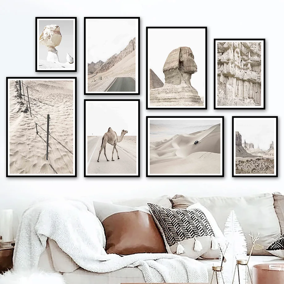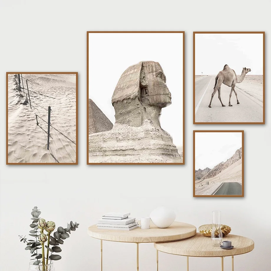 Настенная Картина на холсте пустыня автомобиль внедорожник лама Сфинкс Пирамида плакаты и принты настенные картины для гостиной Декор Куадрос
