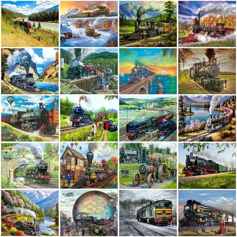 Набор для рисования по номерам на холсте Поезд, масляные краски для самостоятельного рисования