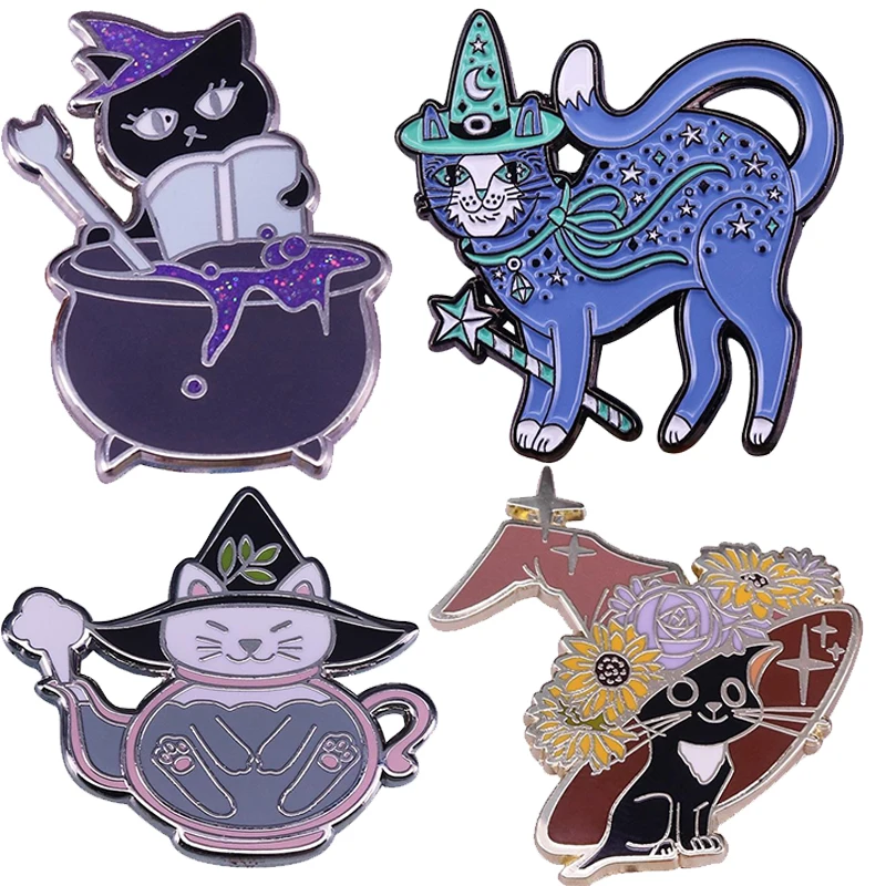 Милый волшебный кот ведьмы волшебный кот эмалированная брошь-Кнопка...