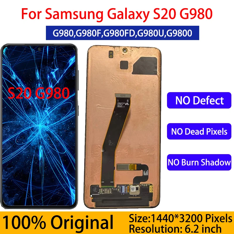Оригинальный ЖК-дисплей 6,2 дюйма для Samsung Galaxy S20 G980 G980F G980FDS, дисплей + сенсорный экран, дигитайзер, рамка с ожогом, запасная часть