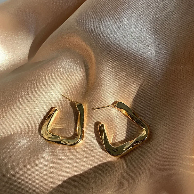 Золотые Винтажные серьги, геометрические металлические матовые золотые серьги для женщин, женские серьги в стиле ретро, модные украшения 2021 года