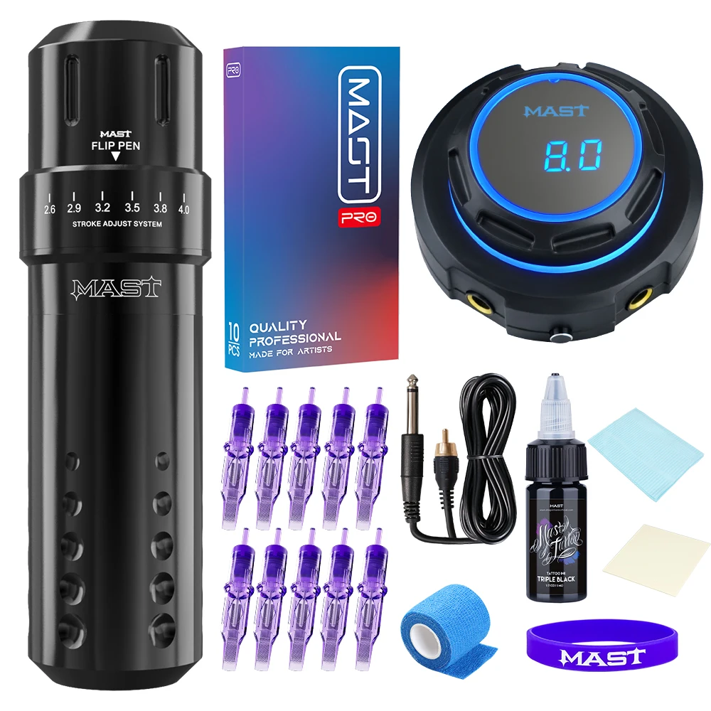 Мачта Флип Новый регулируемый ход Перманентный макияж тату машина набор с oled-дисплеем источник питания картридж иглы набор татуировки