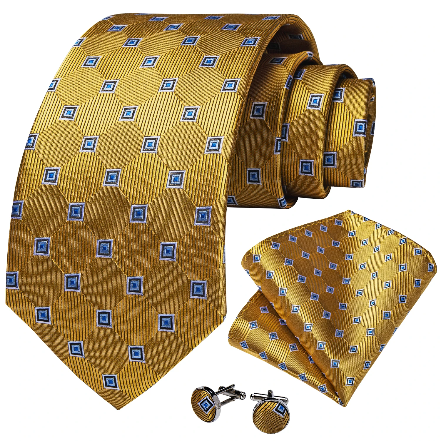 Мужские галстуки в синюю точку, золотые клетчатые галстуки для мужчин, роскошные галстуки-кольца, деловые формальные свадебные галстуки, карманные Квадратные запонки, мужские подарочные галстуки