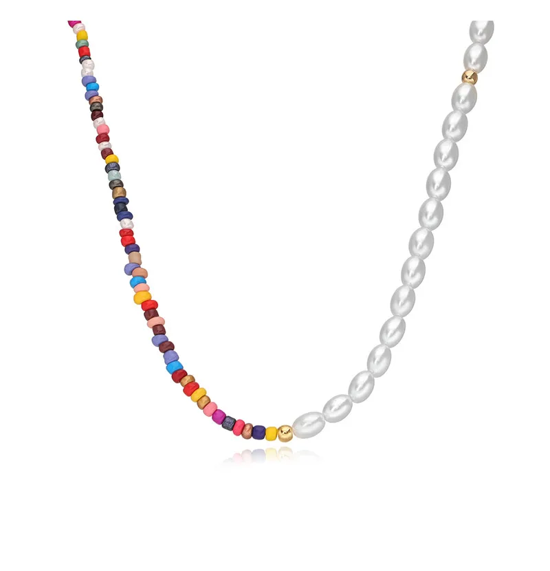 Ожерелье из искусственного жемчуга, с разноцветными рисовыми бусинами