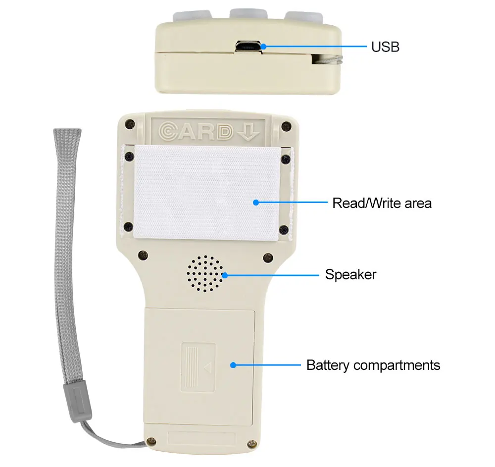 6) типы карт, которые могут быть декодированы: rfid-карта с рабочей частотой 13,56 МГц (ISO1443A/B).7) цифровые клавиши для ввода номера карты можно вводить напрямую.8) имеет интерфейс USB.9) работает с батареей 4 * AAA, стандартная трубка, легко носить с собой. (Батарея не входит в посылка. Вы должны купить его дополнительно.)10) поставляется декодирование, прямая подготовка различных типов дверей доступа к смарт-карте.