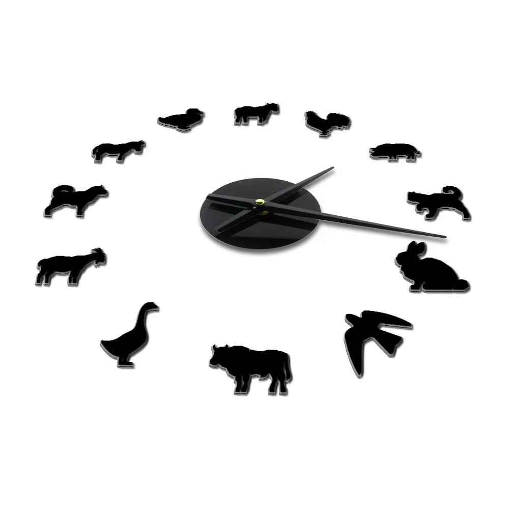 Бескаркасные милые 3d-часы для домашнего декора, настенные часы с изображением свиньи, кролика, котенка, фермы, домашних животных, козы, собаки, птицы, любимого животного, бесшумные часы
