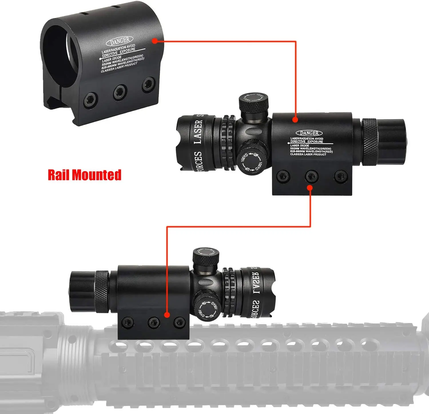 Зеленый лазерный прицел для винтовки, светильник с направляющей Пикатинни, монтажный цилиндр, кабельный переключатель, красная точка, лазерный прицел, коллиматор прицела