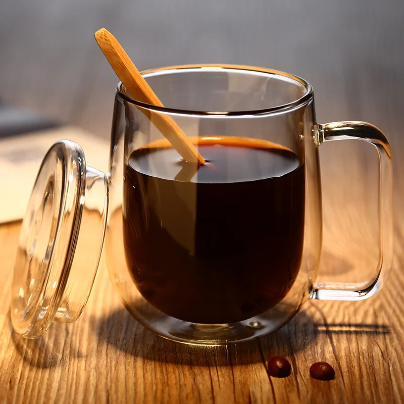 Новый двойной изоляцией кофейная чашка Творческий Кружка творческие подарки кружка для молока, для офиса использования бытовых ложка чехол из прозрачного стекла горячая распродажа