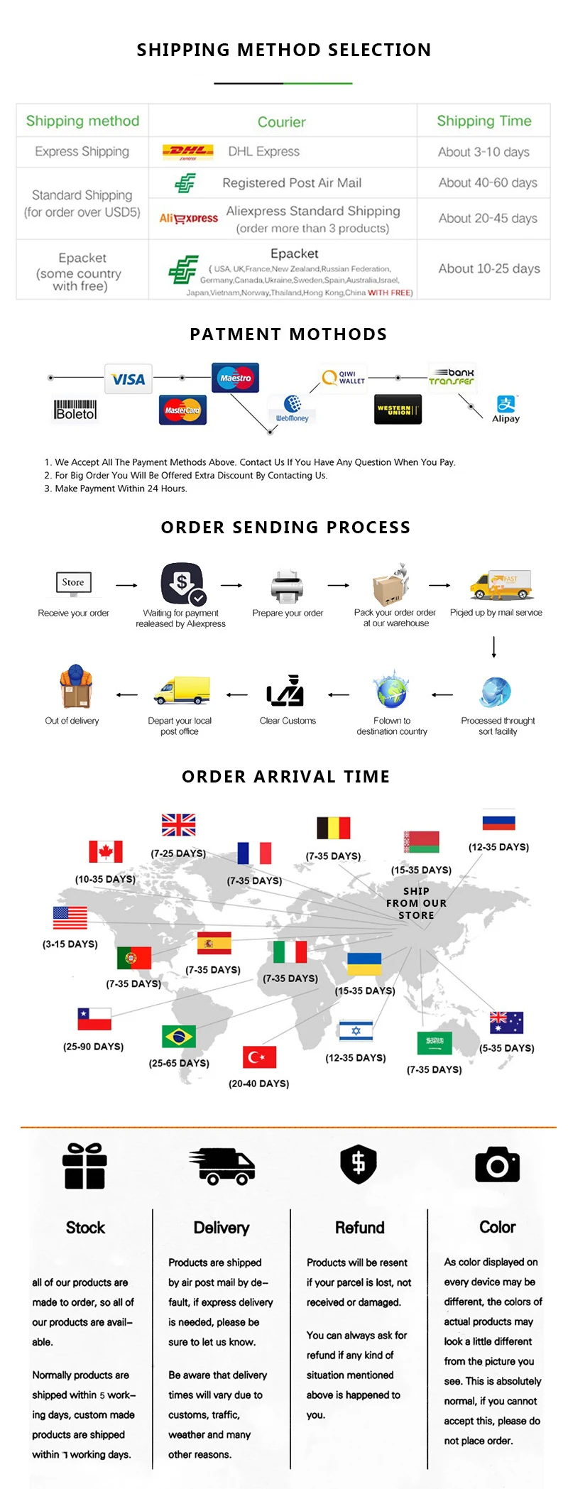 3. Если у вас возникли проблемы с полученным товаром, пожалуйста, свяжитесь с нами как можно скорее, и у нас будут соответствующие решения.