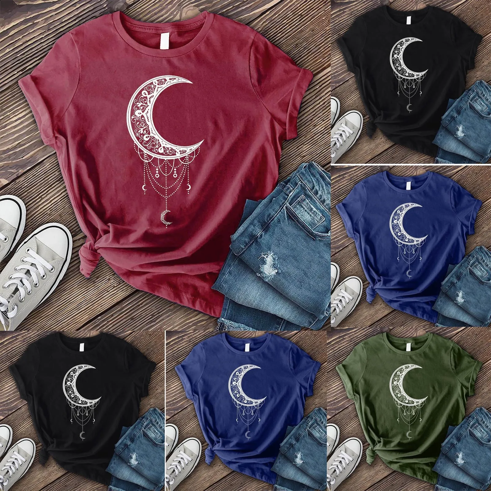 Лунный свет принт Повседневная Женская обувь в стиле Харадзюку, летняя футболка с короткими рукавами с О-образным вырезом Базовая футболка женская одежда топ Femme футболки размера плюс 3XL топ