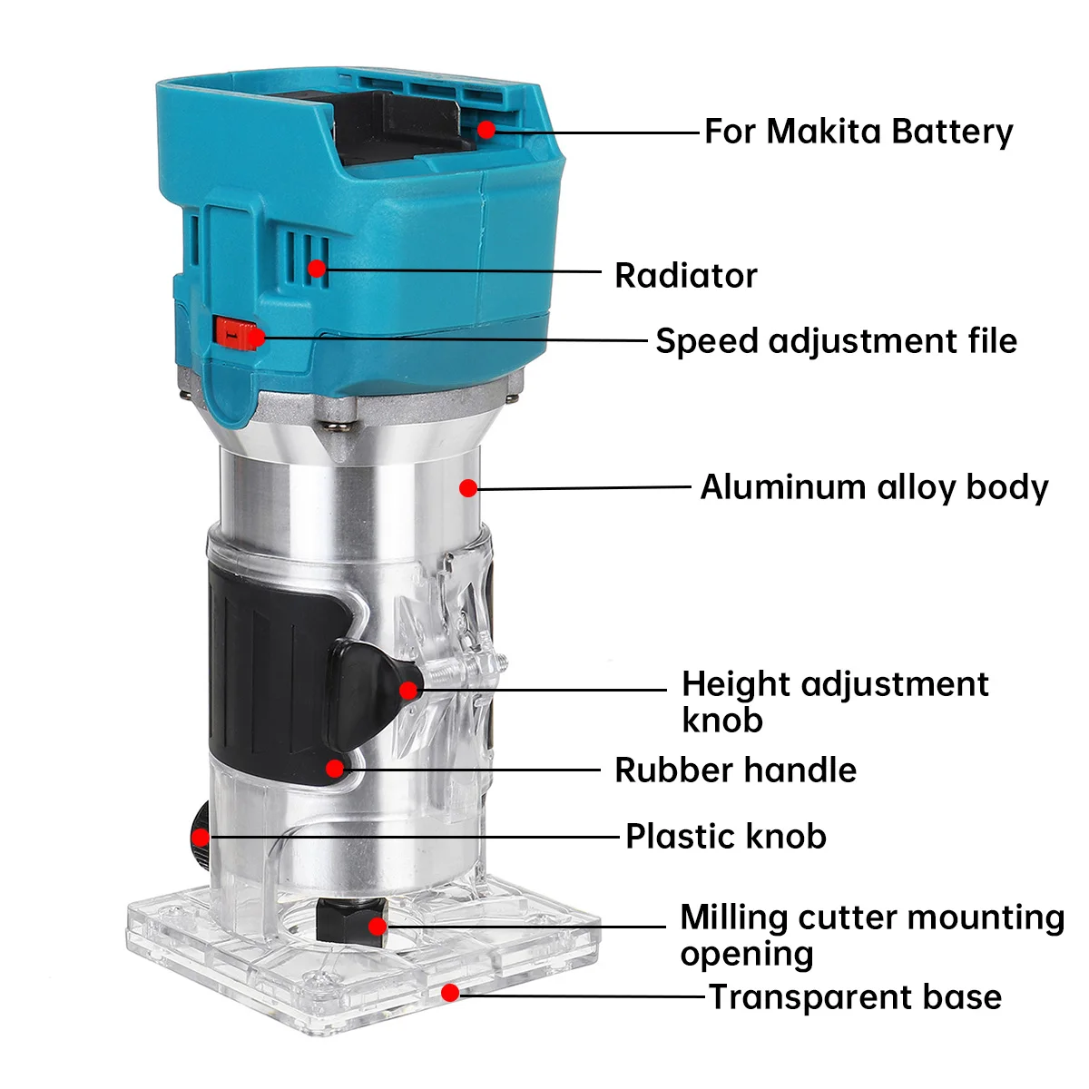 Бесщеточный беспроводной электрический триммер, 6 скоростей, ручная гравировка, долбежная обрезка, машинка для резки дерева, роутер для аккумулятора Makita 18 в