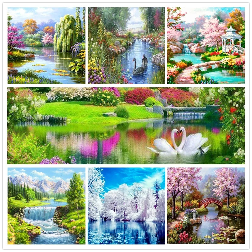 Алмазная живопись сделай сам с лебедями, пейзаж 5D, вышивка крестиком, картина из страз, стразы, украшение для дома, подарок