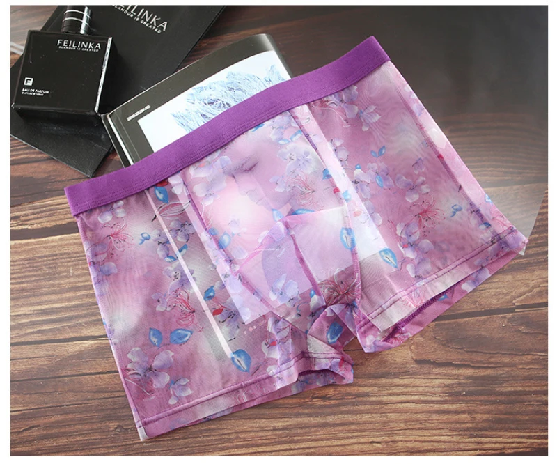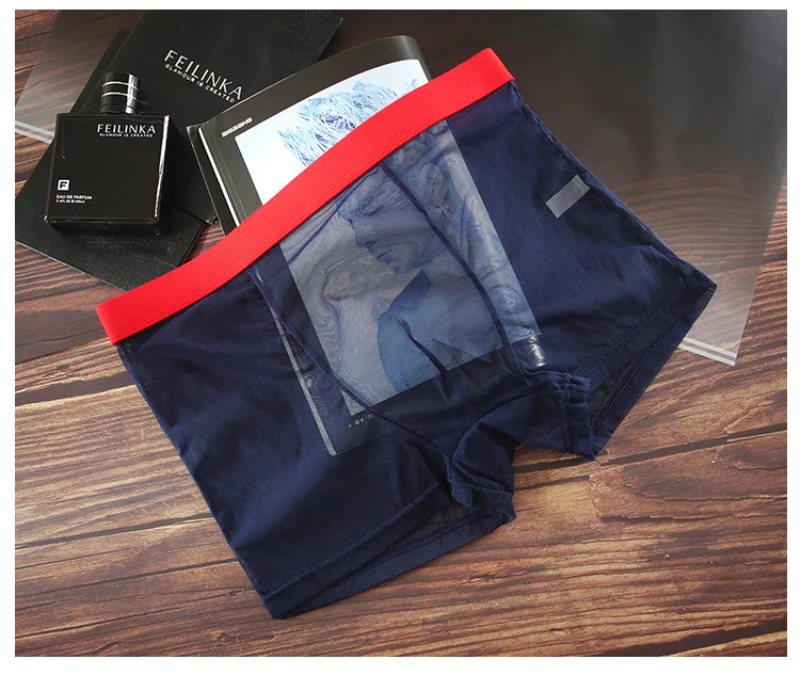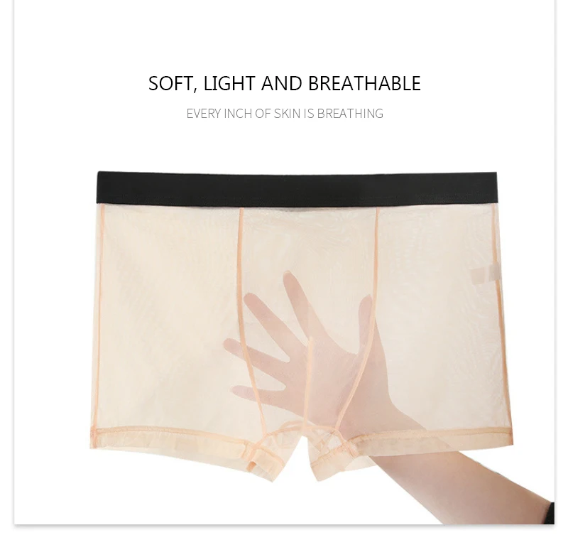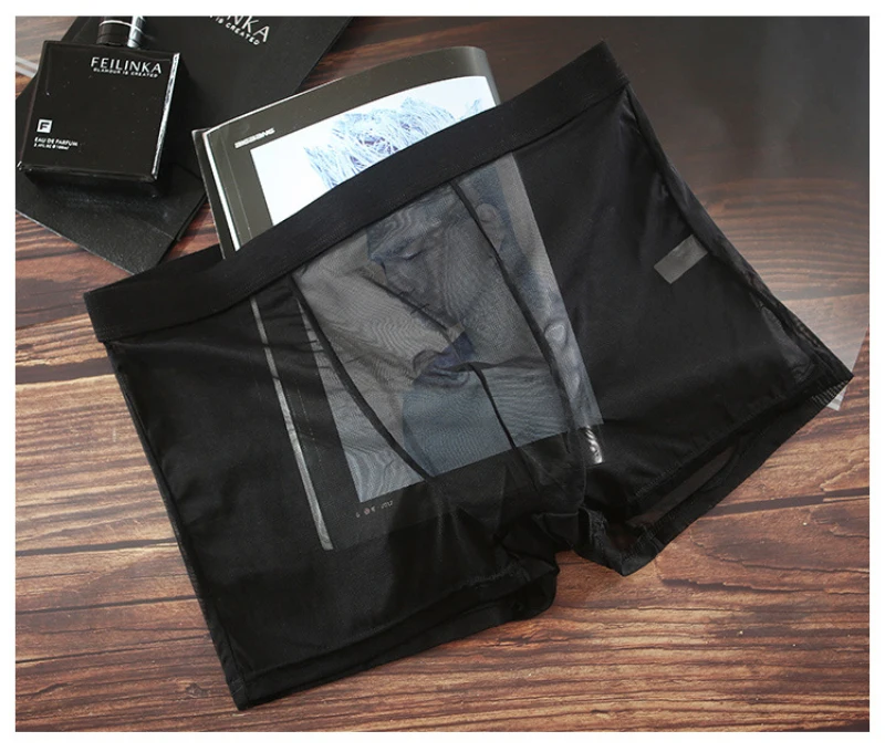Мужское сексуальное бесшовное нижнее белье, штаны, ультратонкое Прозрачное нижнее белье без следов, сетчатые трусы-комбинации со средней посадкой, мужские трусы, боксеры, шорты