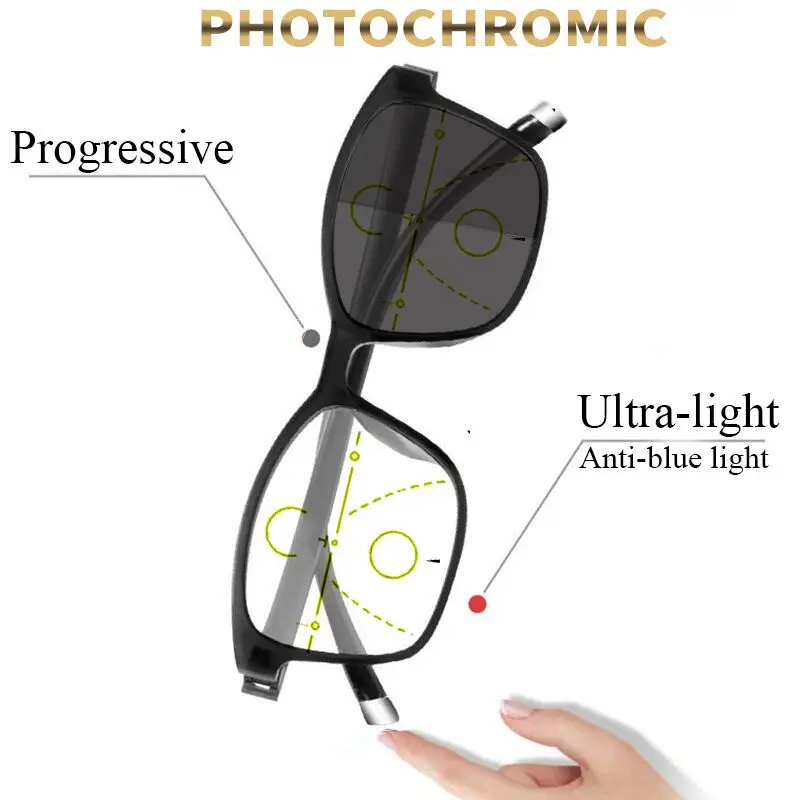Очки для чтения мужские фотохромные, Мультифокальные, TR90, 1,0-4