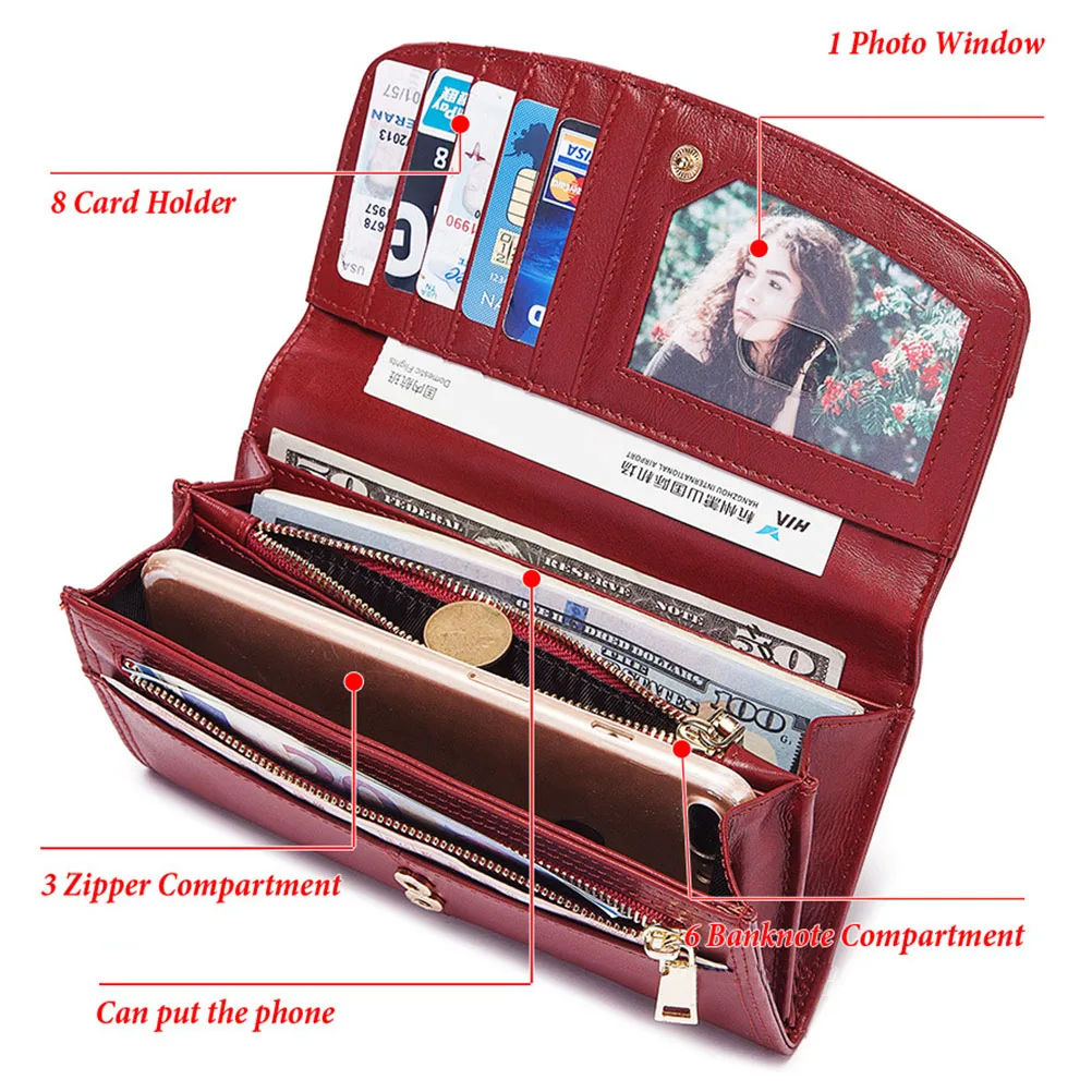 Модный женский клатч из воловьей кожи, удлиненное портмоне с Rfid, ...