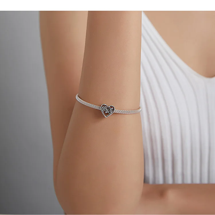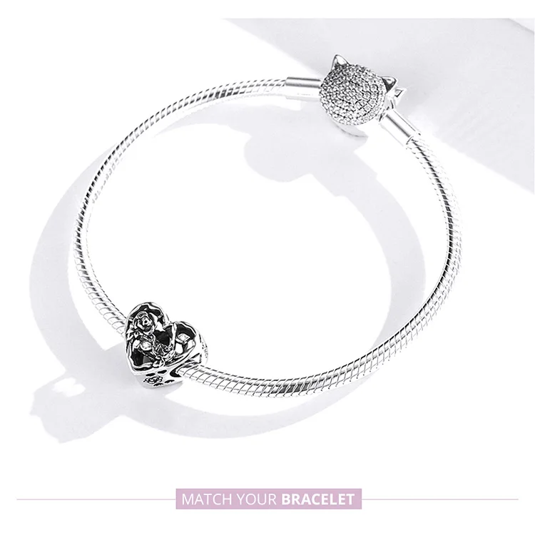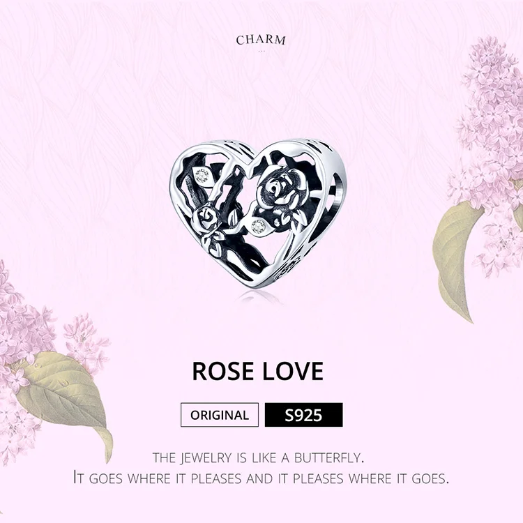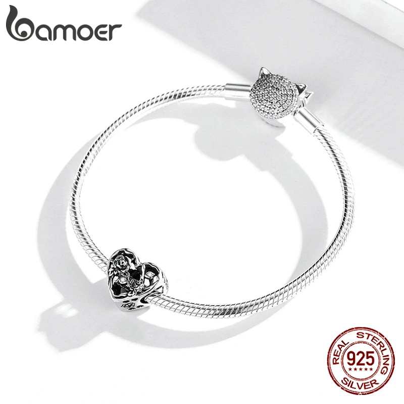 Bamoer 925 пробы Серебряная роза любовь Бусина в форме сердца 925 пробы серебряный шарм для оригинального браслета браслет женский подарок BSC475