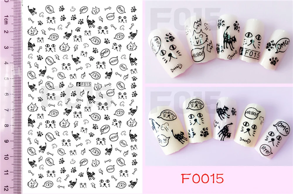 1 лист 3D наклейки для ногтей черные линии Цветы животные Листья Се...