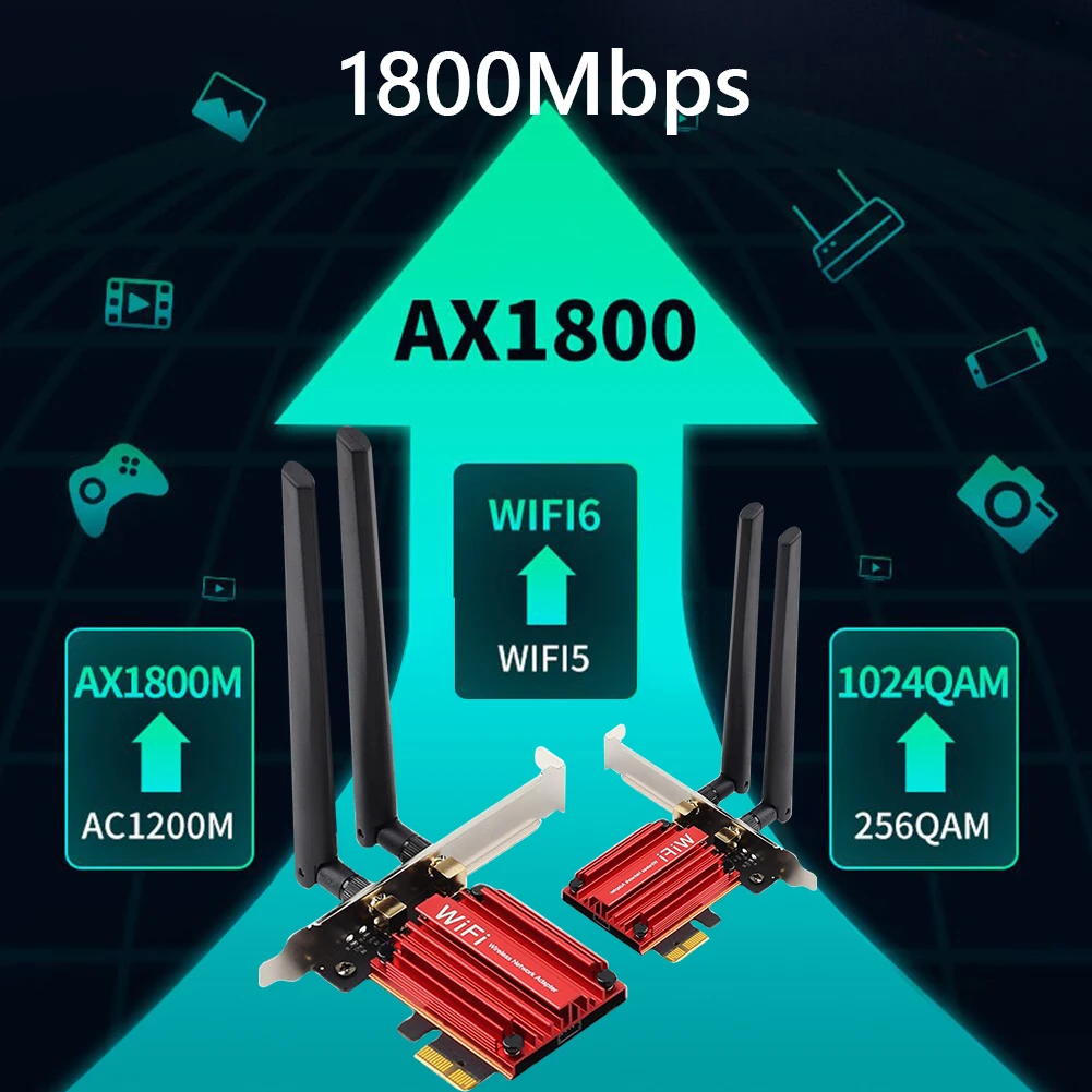 Двухдиапазонный 1800 Мбитс Wi-Fi 6 Bluetooth-совместимый 5,2 PCI-E ...