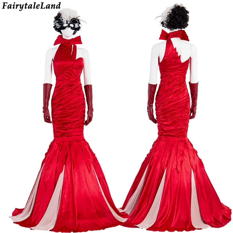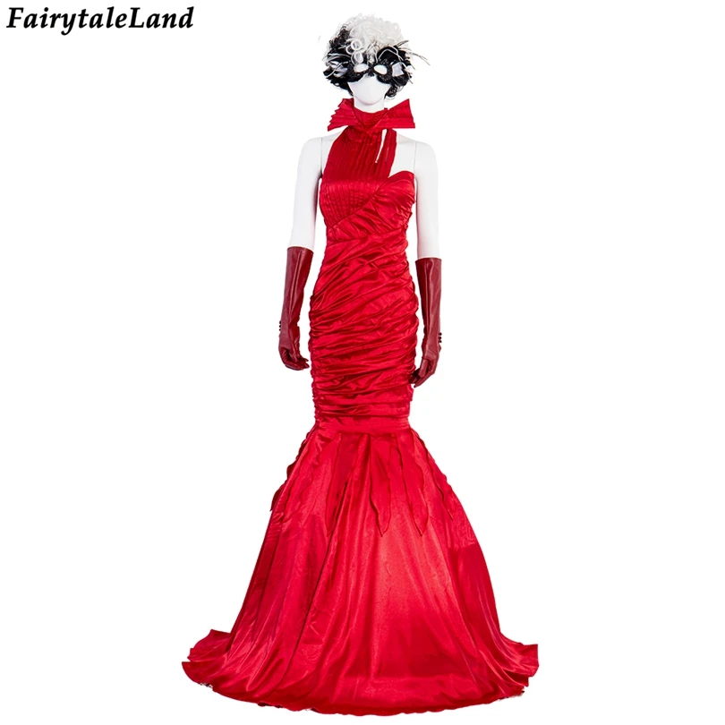 Красные платья для косплея Cruella на Хэллоуин, Модный Королевский костюм, Свадебный вечерний наряд для вечеривечерние, фотомаска, платье русалки