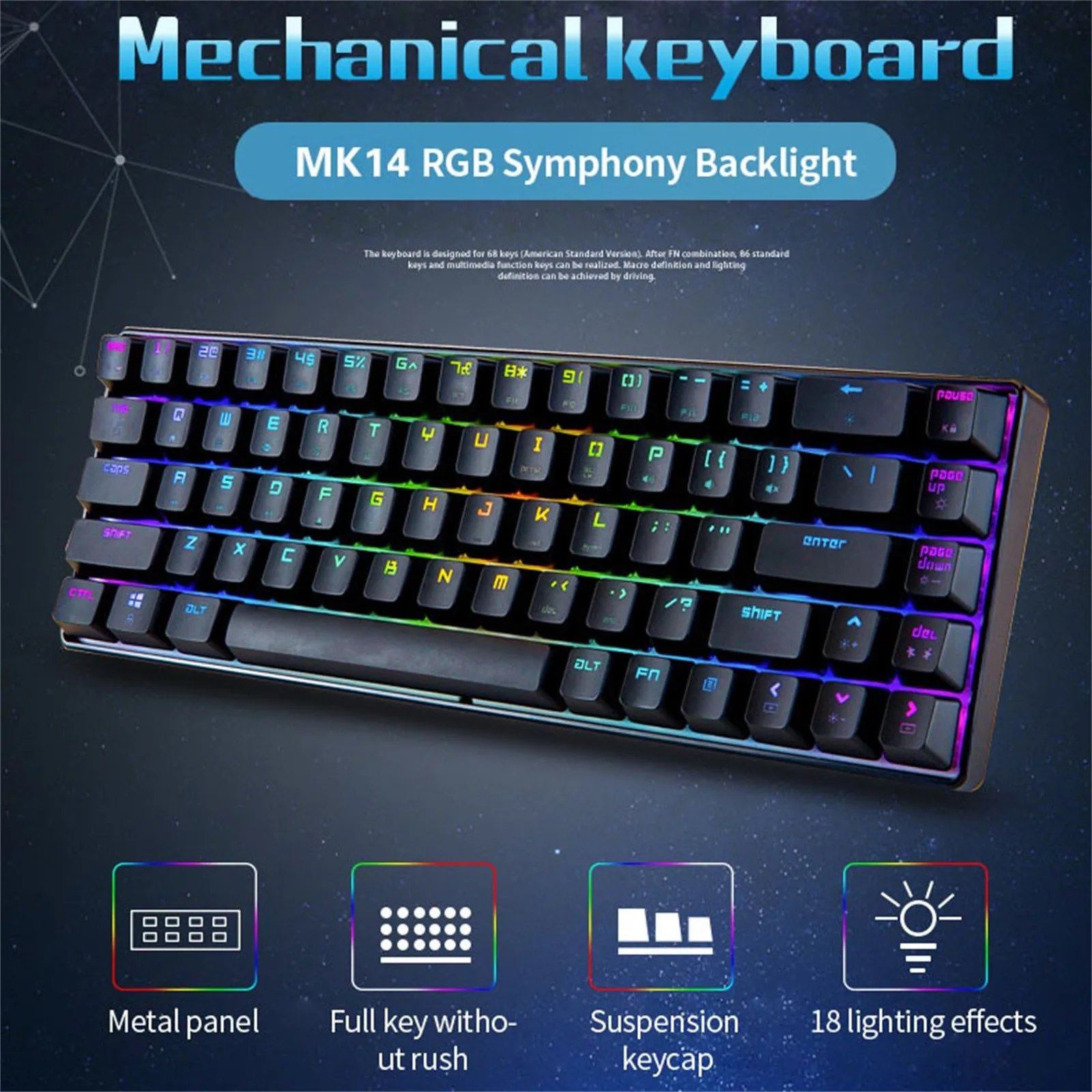 [Анти-ореолы 68 клавиш] позволяют несколько клавиш работать на высокой скорости одновременно. Каждая кнопка управляется независимым переключателем, поэтому вы можете быстро отвечать и наслаждаться высококачественными играми. Это идеальный выбор для геймеров, машинок, программистов, писателей и т. д.