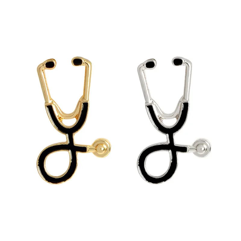 Черная брошь в форме стетоскопа, блестящие эмалированные булавки с ...