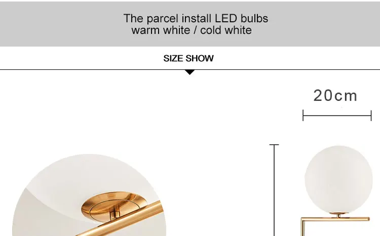 1. Напряжение: AC220V /110V2. Цвет: матовый черный/матовый золотойСтеклянный шар: белое непрозрачное стекло3. Используется: спальня/гостиная/Deauty салон4. Материал: железо + стекло5. Светильник источник: E276. Лампочки включены: Да7. Мощность: 5 Вт теплый8. Упаковка:. Экспортный стандарт