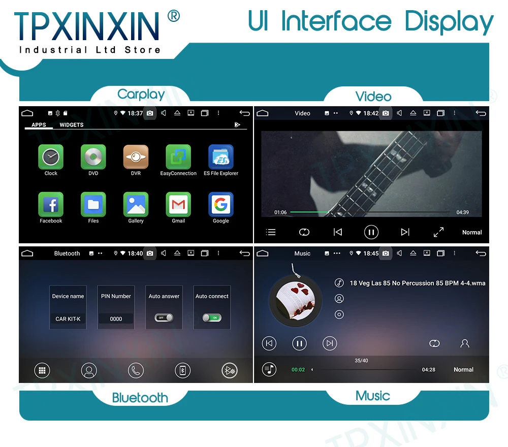 Формат видео: поддержка HD 1080P /2K IPS экранПоддержка Carplay.Поддержка Android AUTOГолосовое управление на английском языкеРазрешение экрана: 1024*768 или выше, емкостный 5 точек касания, с функцией двойной зоныBluetooth 5,0 синхронизация телефонных звонков вручную, поддержка NX TX ATTX.Встроенная функция Wi-Fi (Используйте точку доступа со смартфона для подключения к Интернету)Встроенное приложение Google Play Store, загрузите приложение, которое вы хотите.Оперативная память: DDR3 4 Гб, поддержка внешней флэш-памяти 128 ГБВстроенная автономная карта GPS, поддержка онлайн-карты, поддержка Google Map.Аудиовыход 4*50 Вт, эквалайзер: 9 эквалайзеров для звукаРадио чип NXP6686, AM / FM с RDSПоддержка AUX-IN аудио, с 2 usb-портамиПоддержка управления рулевым колесомСертификация: CE FCC RoHsНапряжение: DC12V-14V