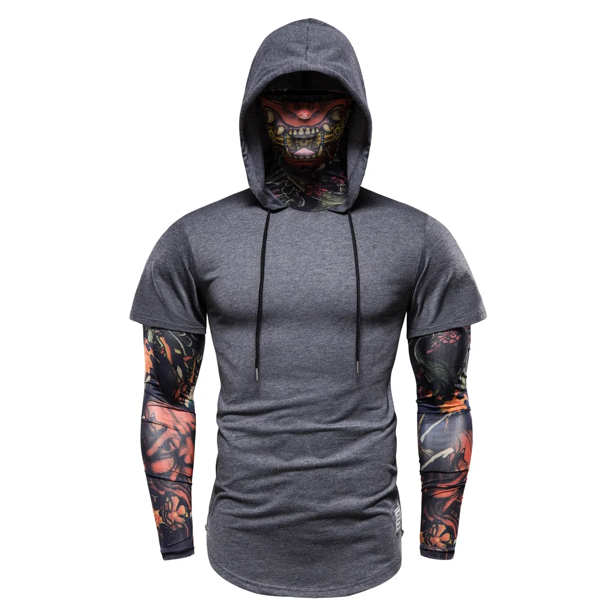 Летняя мужская футболка с длинными рукавами, дизайнерская футболка с капюшоном с имитацией двух частей из ледяного шелка