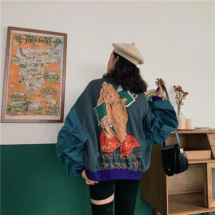 Женская куртка большого размера с карманами и пуговицами Harajuku, куртка-бомбер с длинным рукавом и буквенным принтом, бейсбольная куртка, верхняя одежда для женщин, весна-осень