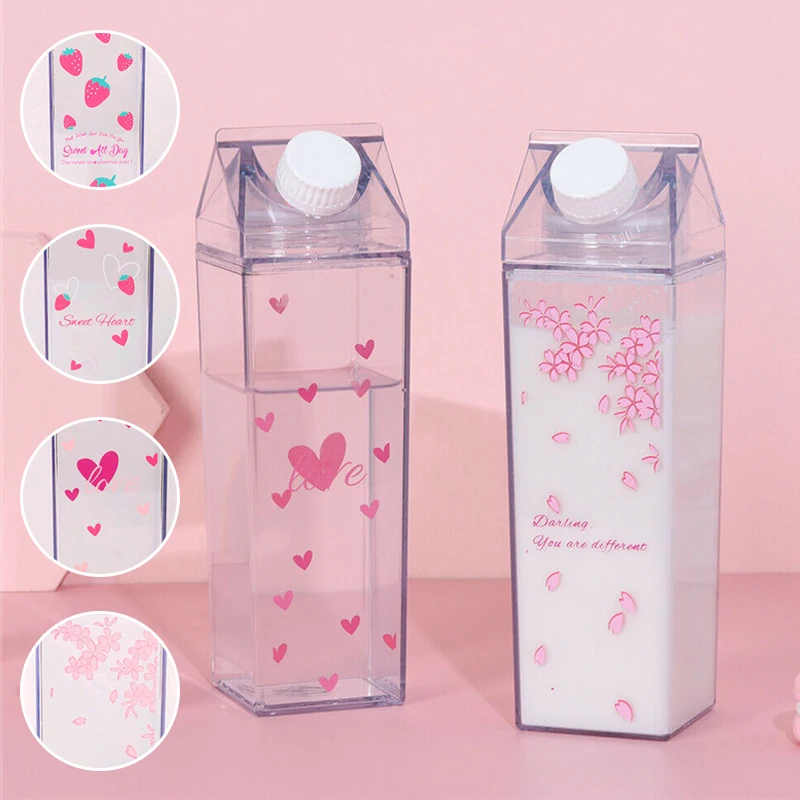 500 мл креативная Милая пластиковая прозрачная молочная картонная бутылка для воды модная Клубничная прозрачная коробка для Молока бутылка для сока и воды