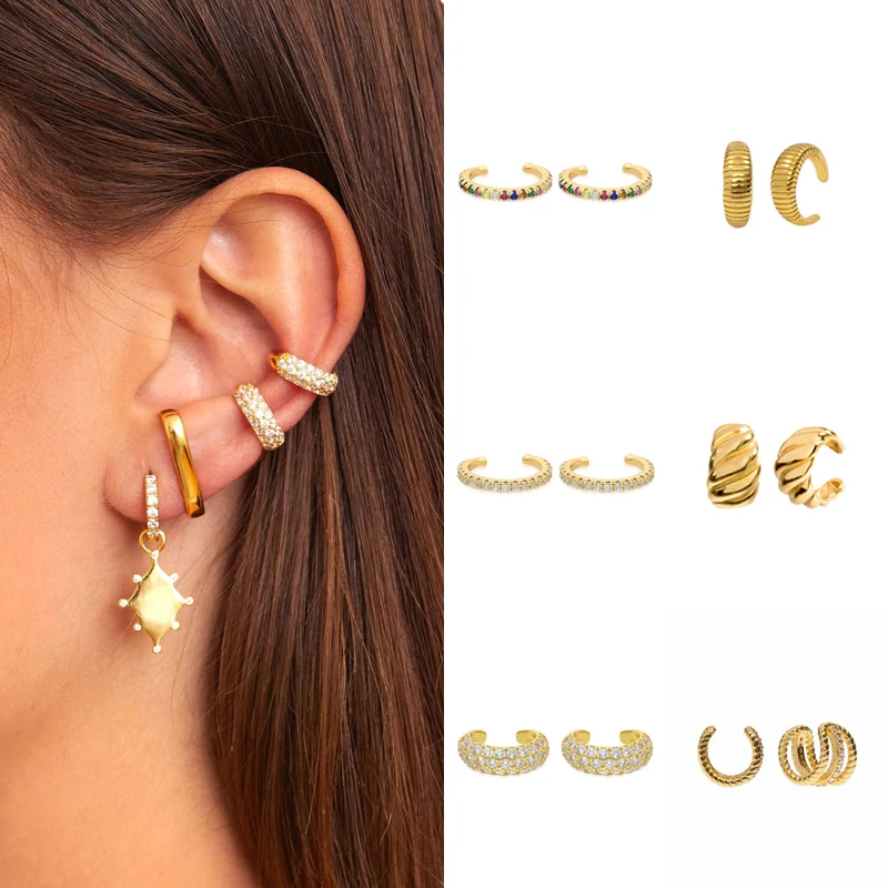 ISUEVA 18K позолоченные мини-клипсы для ушей с фианитами для женщин и девушек серьги без серьги в стиле пирсинга клипсы ювелирные изделия из циркония
