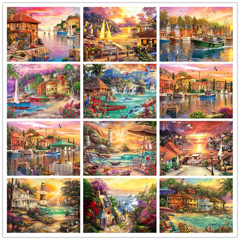 Алмазная вышивка сделай сам, вышивка морской пейзаж 5D картина из страз, пейзаж заката, стразы, картина, домашний декор