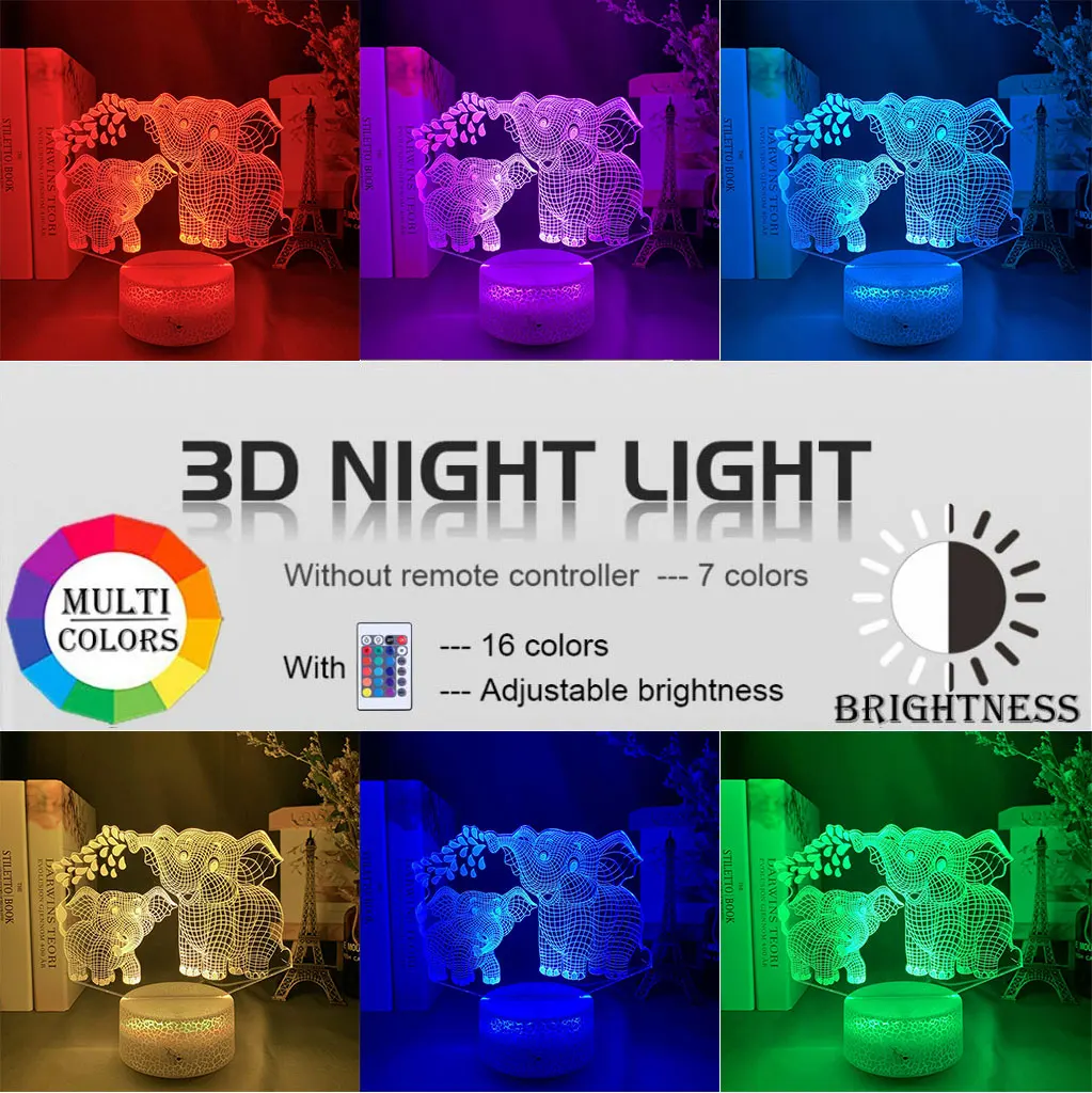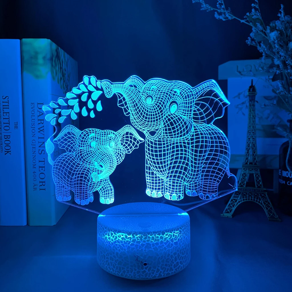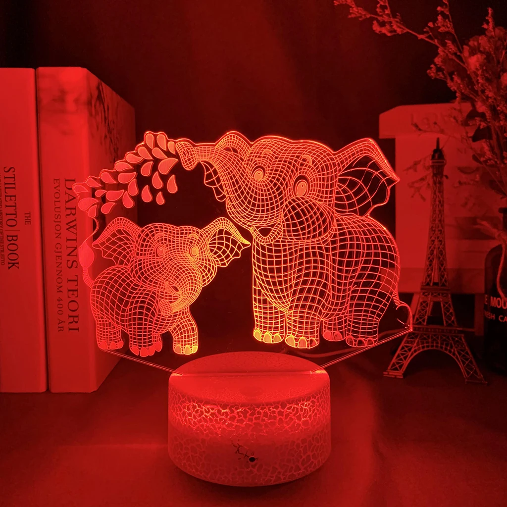 Цветной Акриловый 3d-переключатель, 7 цветов, с изображением животных, матери и сына слона, светодиодный светильник, ночник USB, блок питания, домашний декор