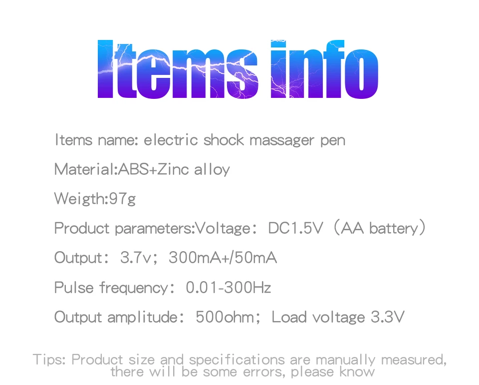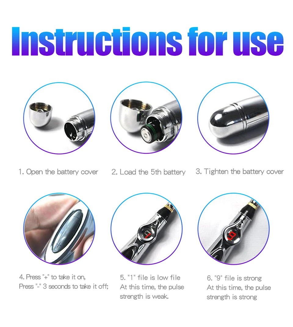 Особенность: Изготовлен из: АБС-пластика + цинкового сплава Размер: 28*180 мм Вес: 189 г (первый комплект); 118 г (второй комплект); 82 г (третий комплект) Батарея: батарея AA * 1 (не входит в комплект) Сила электричества: 9 уровней Дизайн: ручка с 5 массажными головками Специальность: портативный; Подходит для одного или пары; Снятия усталости Воздействие: поражение электрическим током; Массаж тела; Стимуляция чувствительных частей Упаковочный лист: 1. Электронная акупунктурная ручка * 1, Сменная головка * 4, руководство пользователя * 1, оригинальная коробка * 1 2. Электронная акупунктурная ручка * 1, Сменная головка * 2, Подарочные смазки * 2, руководство пользователя * 1, оригинальная коробка * 1 3. Электронная акупунктурная ручка * 1, Сменная головка * 2, Подарочная повязка на глаза * 1 Эффект: 1. Есть 5 видов массажных головок, массаж точки узла (голой головы), плоский массаж, сферический массажер, скребковый массаж, массажные массажи; 2. Это может дать вам 9 уровней стимуляции электрическим током, накатив на член, надавив на соски, клитор, соскабливая грудь, анус, промежность, член и другие чувствительные части; 3. Он хорошо массирует лицо и мышцы тела, снимает усталость, расслабляет, Он спроектирован так же, как ручка, он Портативный и удобный в использовании; 4. Подходит для одиночной или пары, ее ток велосипедный от головы к ручке, который будет идти вокруг вас и вашего партнера, электричество течет через обе стороны и циркулирует. (Для электрификации лучше нанести смазки!) Руководство пользователя: 1. Установите батарейку AA и затяните крышку; 2. Нажмите среднее положение кнопки питания для запуска; 3. Нажмите «+», чтобы усилить электрическую частоту, «-», чтобы ослабить; 4. Выньте аккумулятор, если закончите. Примечание: При использовании пары обе стороны будут чувствовать себя электрически.