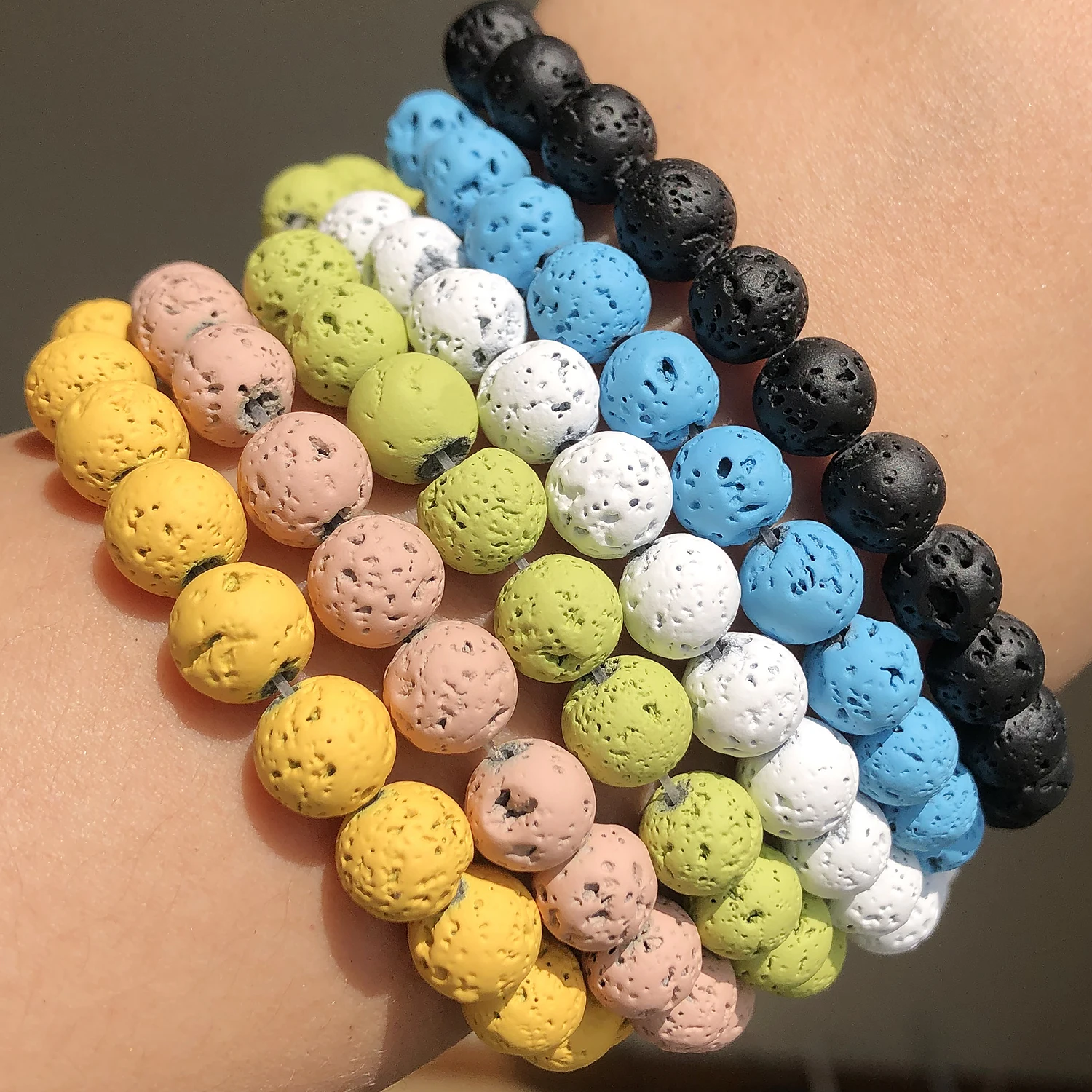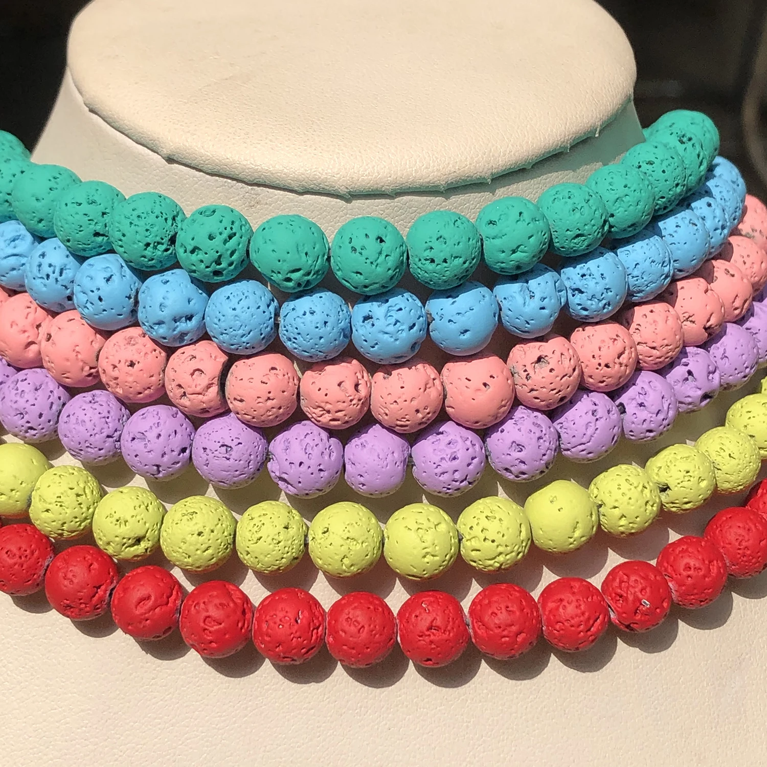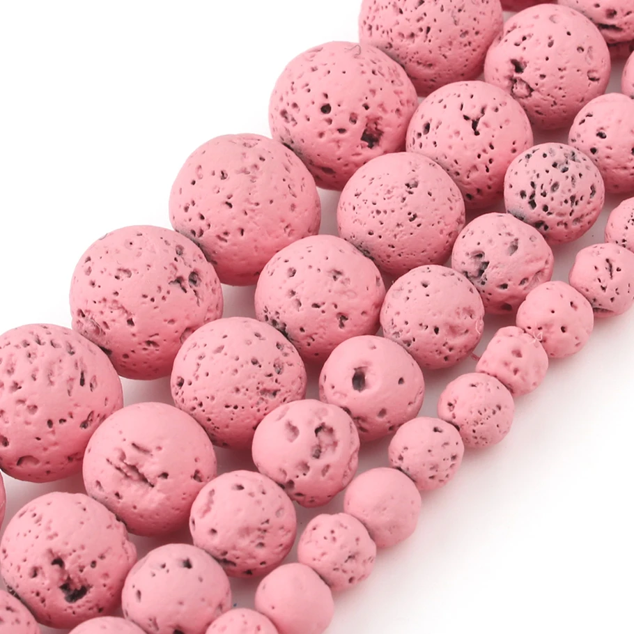 Натуральные круглые бусины, цвета: черный, зеленый и розового цветов на резиновой подошве камень из вулканической лавы свободные бусины для самостоятельного изготовления ювелирных изделий Браслеты 46810 мм 15''