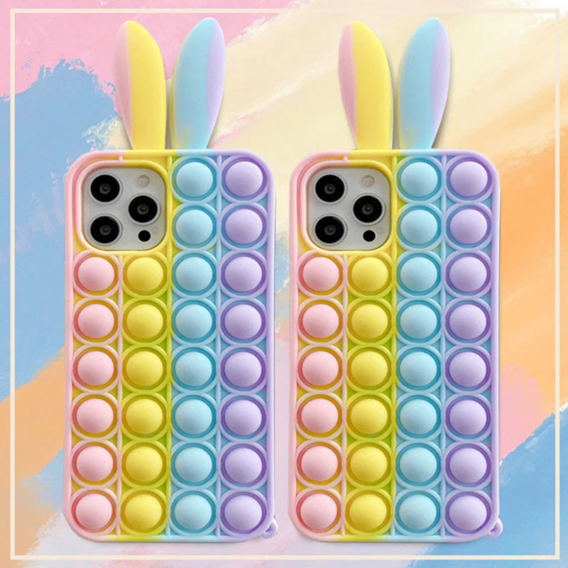 Для Iphone11 12 ProMax 7/ 8P XR XS MAX мягкий игровой чехол снятие стресса Спиннер игрушки Push It Bubble силиконовая крышка в виде ушей кролика чехол