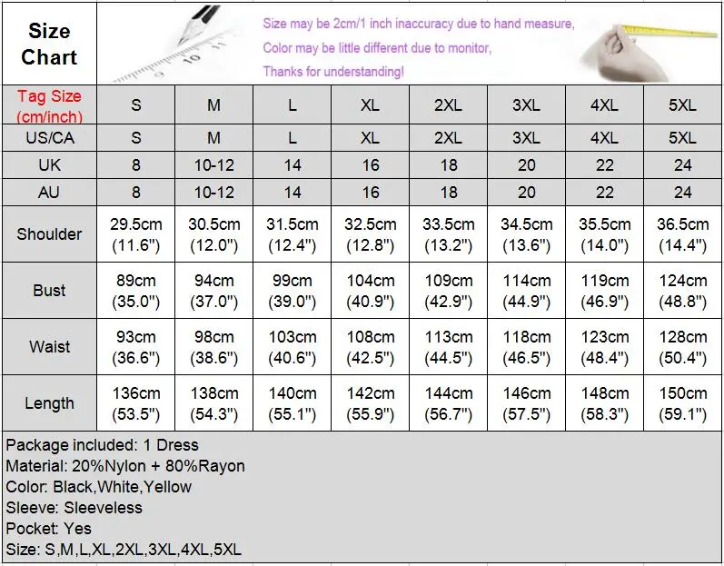 Посылка входит: 1 платьеМатериал: 20% нейлон + 80% вискозаЦвет: черный, белый, желтыйРукав: без рукавовКарман: ДаРазмер: S,M,L,XL,2XL,Узор: однотонныйДлина: до щиколоткиОсобенности: v-образный вырезСтиль: Досуг, Повседневный, Европа, литература, модаСезон: летоПовод: семья вечерние, пляж, свадьба, праздник, встреча, путешествия, ПовседневнаяВнимание:1. Пожалуйста, проверьте размеры в таблице размеров перед покупкой!2. Размер может быть неточным на 2 см/1 дюйм из-за ручного измерения, цвет может немного отличаться из-за монитора, спасибо за понимание!3. Рекомендуется стирать вручную в холодной воде. Это помогает предметам сохранять форму.