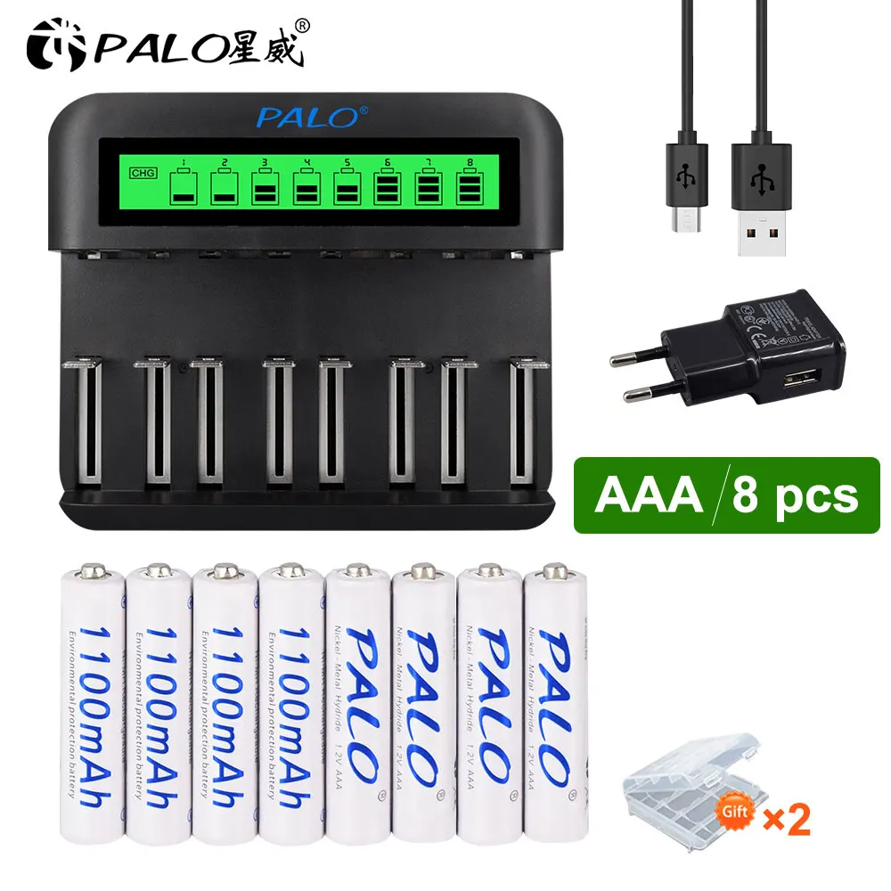 Аккумуляторные батареи PALO AAA 1,2 в AAA 3A aaa 1100 мАч с 8 слота...