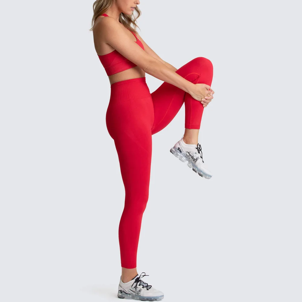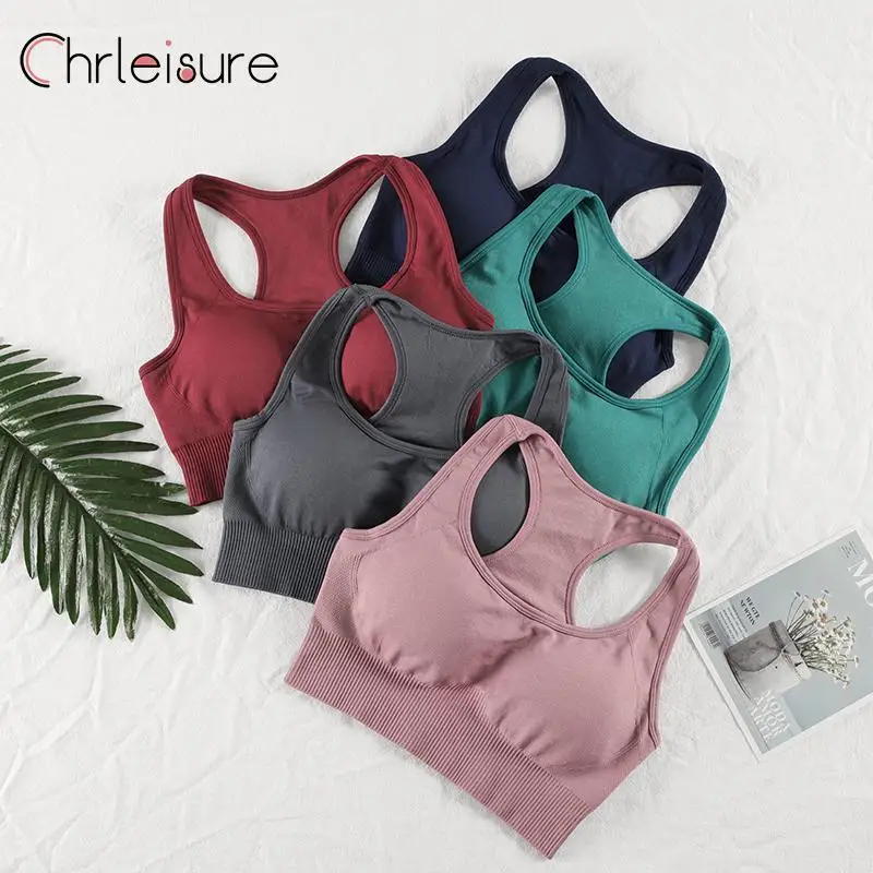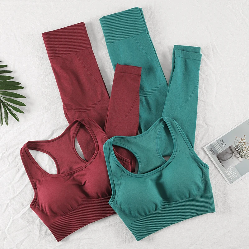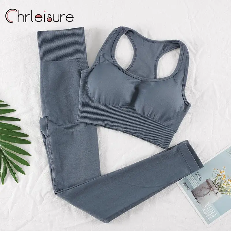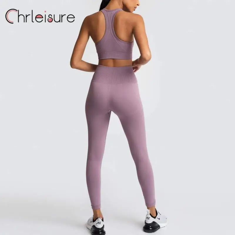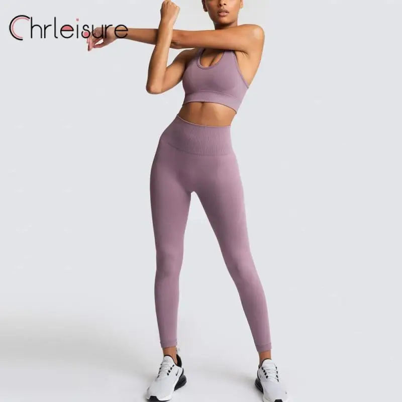 Женский костюм для фитнеса CHRLEISURE, укороченный топ, бесшовные леггинсы, спортивный костюм из двух предметов, комплект спортивной одежды для тренировок