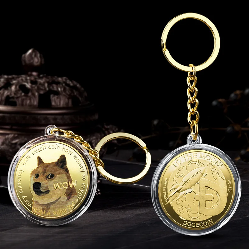 Красивый позолоченный брелок для ключей Dogecoin To The Moon, Сиба-...