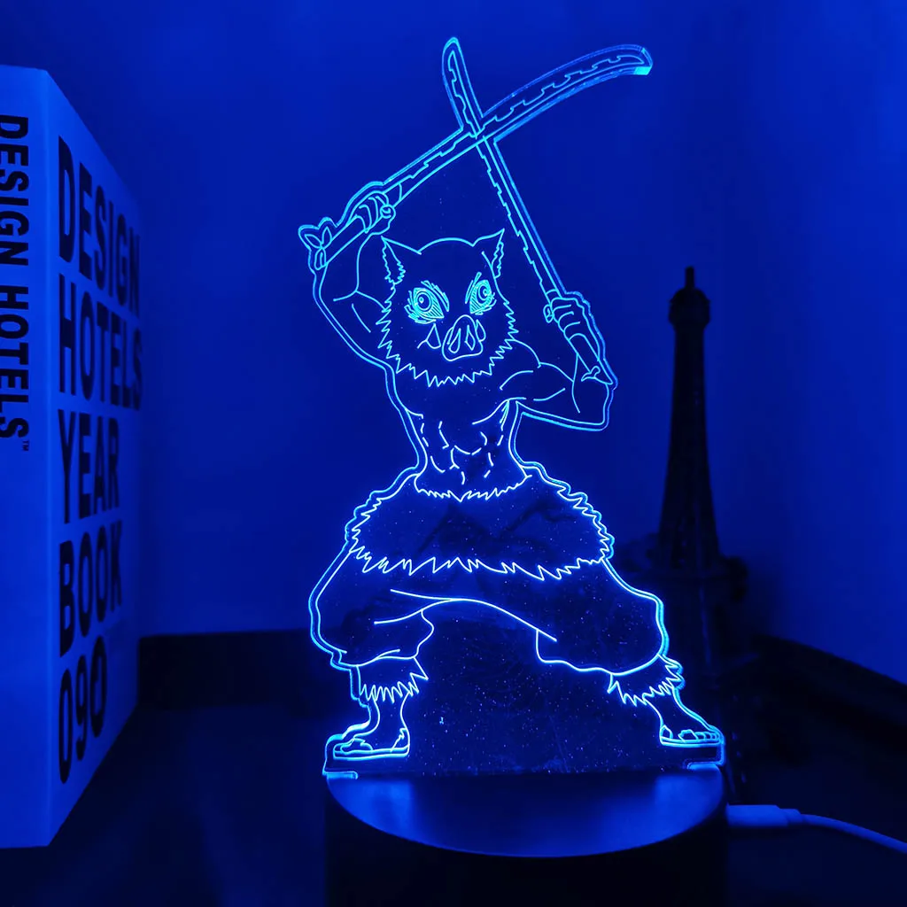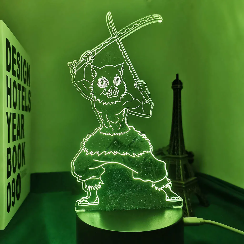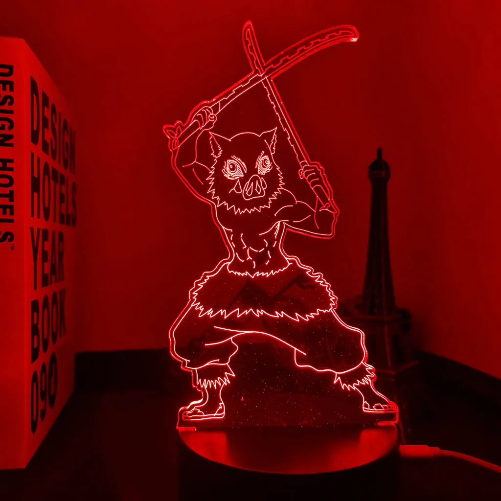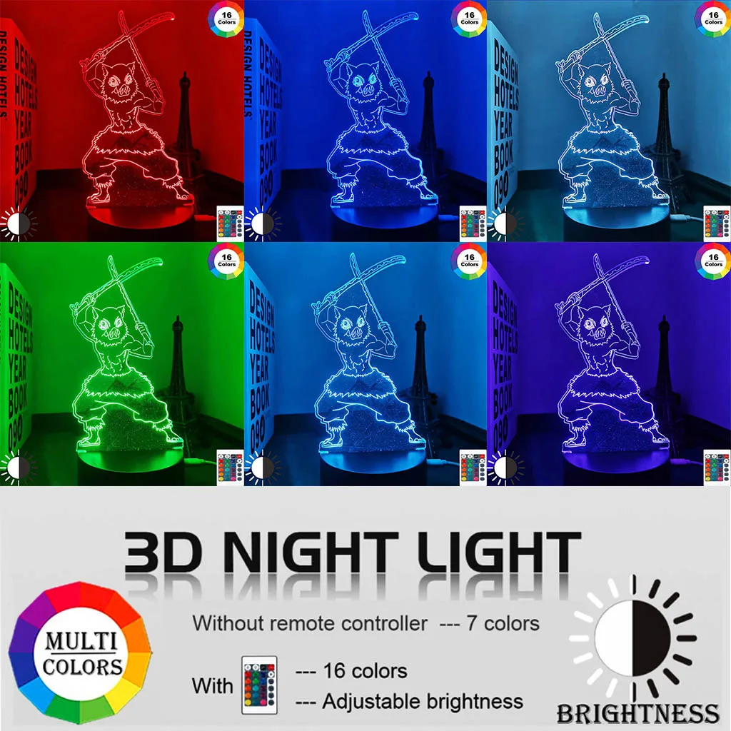 3d светодиодный ночной Светильник аниме демон убийца Kimetsu без Yaiba для Украшения в спальню светильник манга, подарок на день рождения, Inosuke Hashibira светодиодный 3d лампа