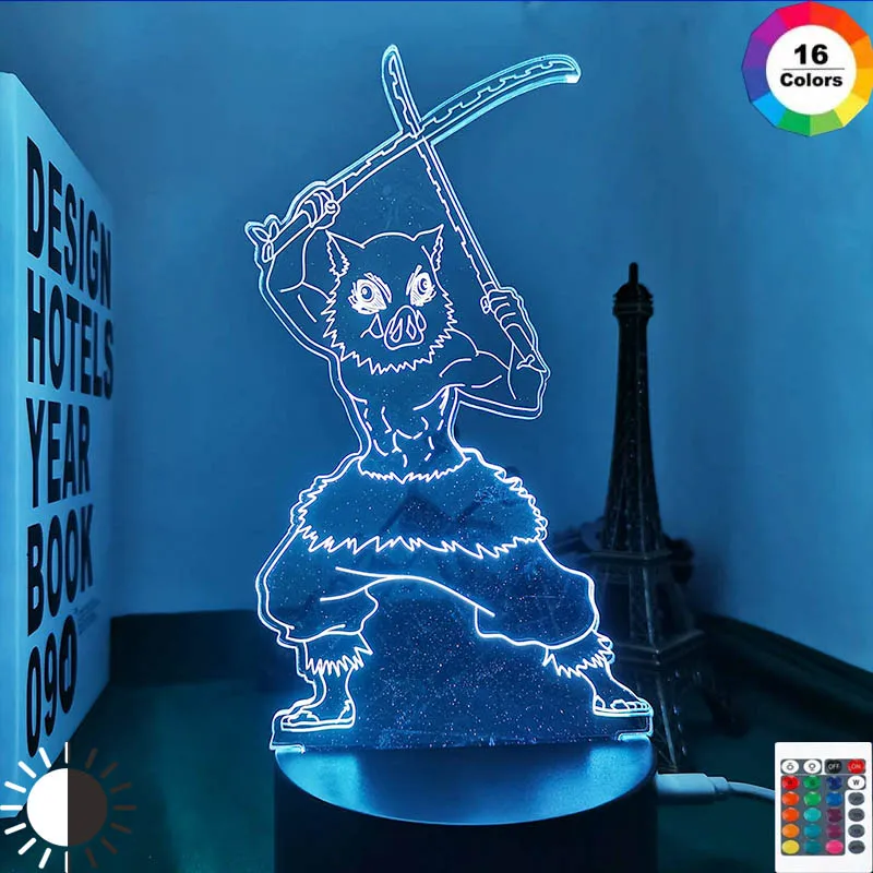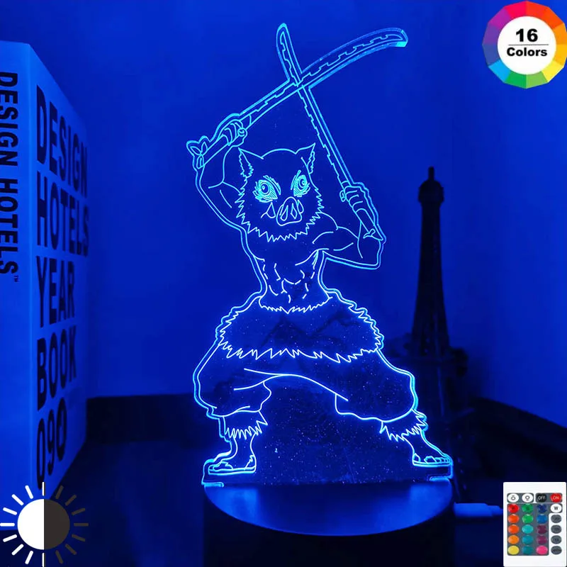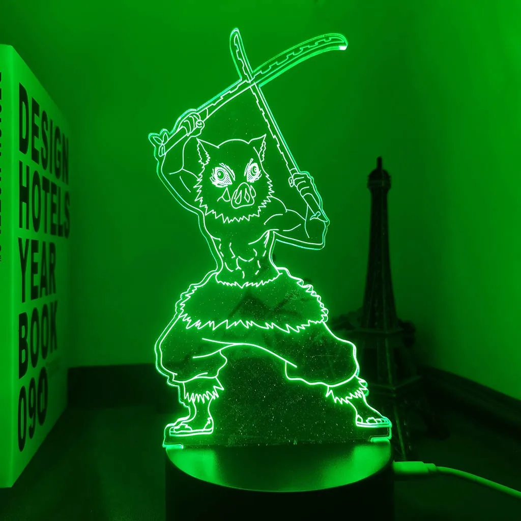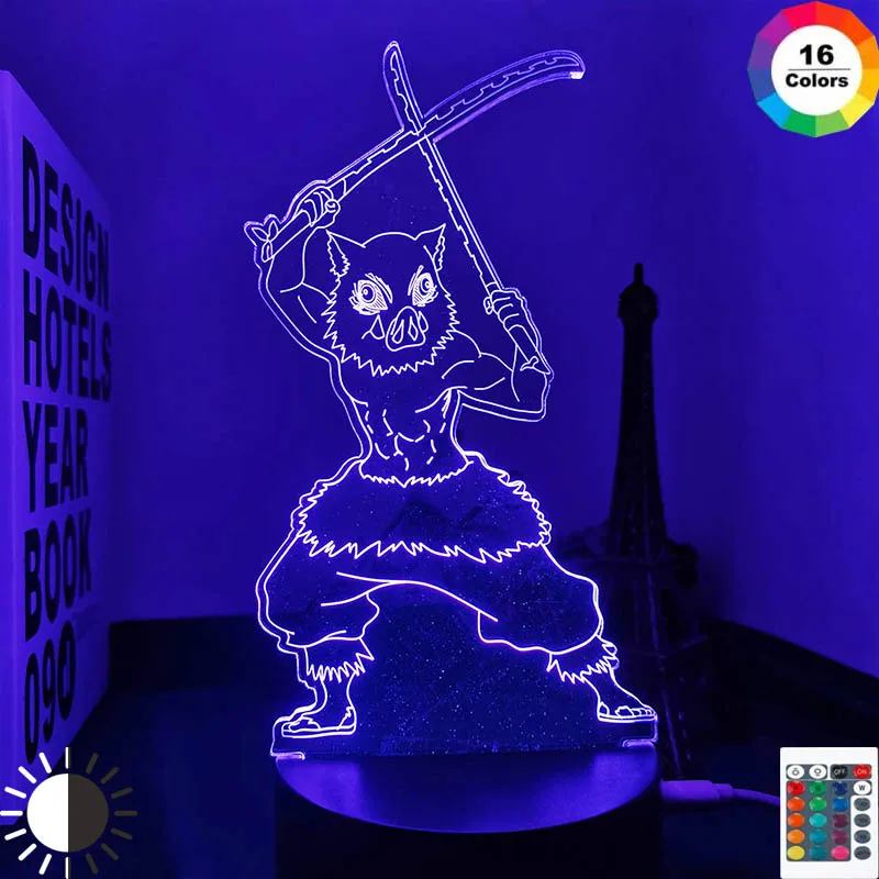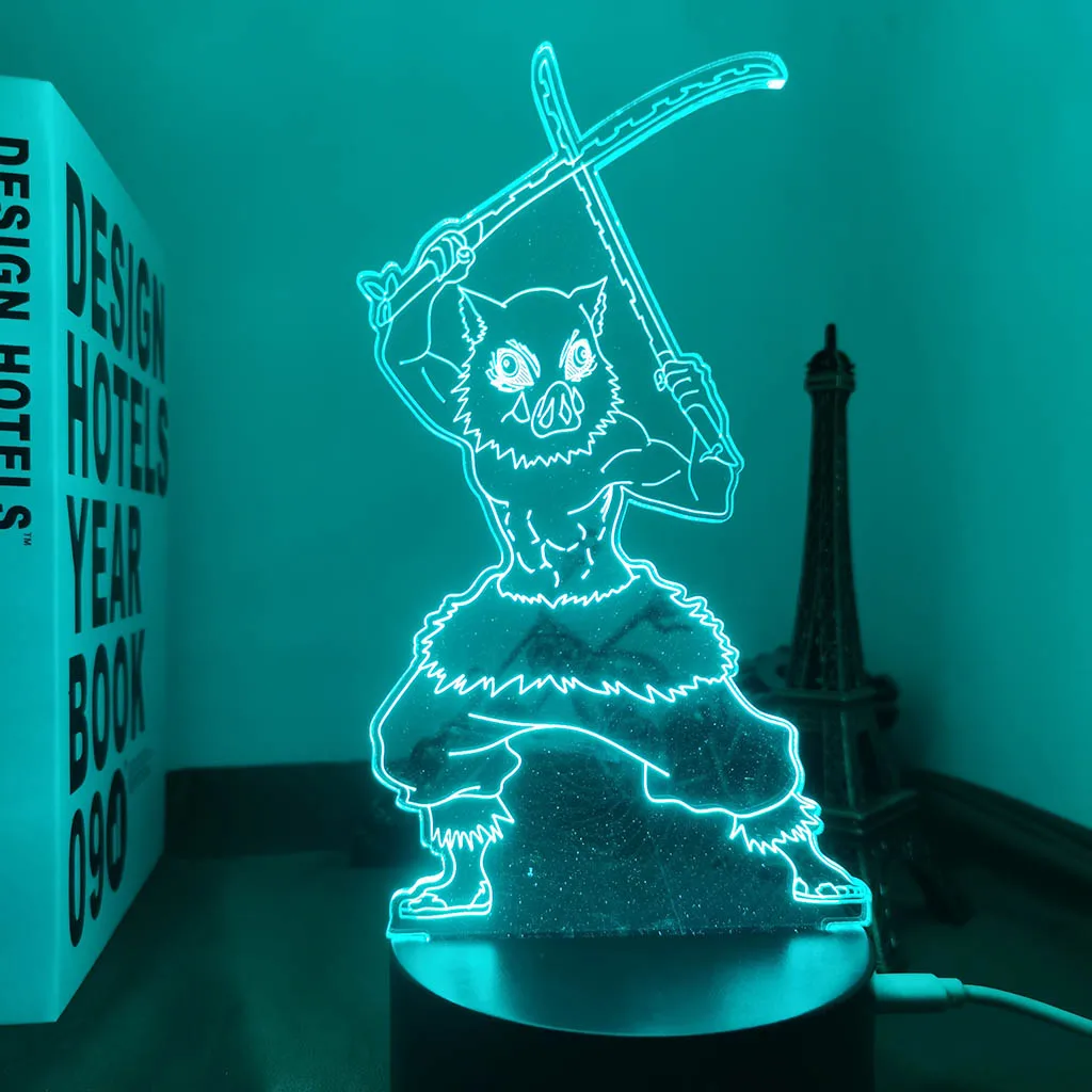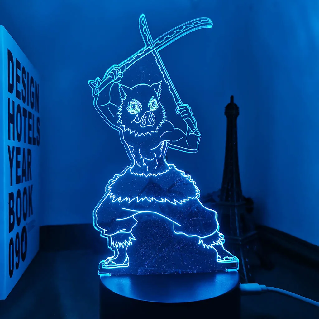 3d светодиодный ночной Светильник аниме демон убийца Kimetsu без Yaiba для Украшения в спальню светильник манга, подарок на день рождения, Inosuke Hashibira светодиодный 3d лампа