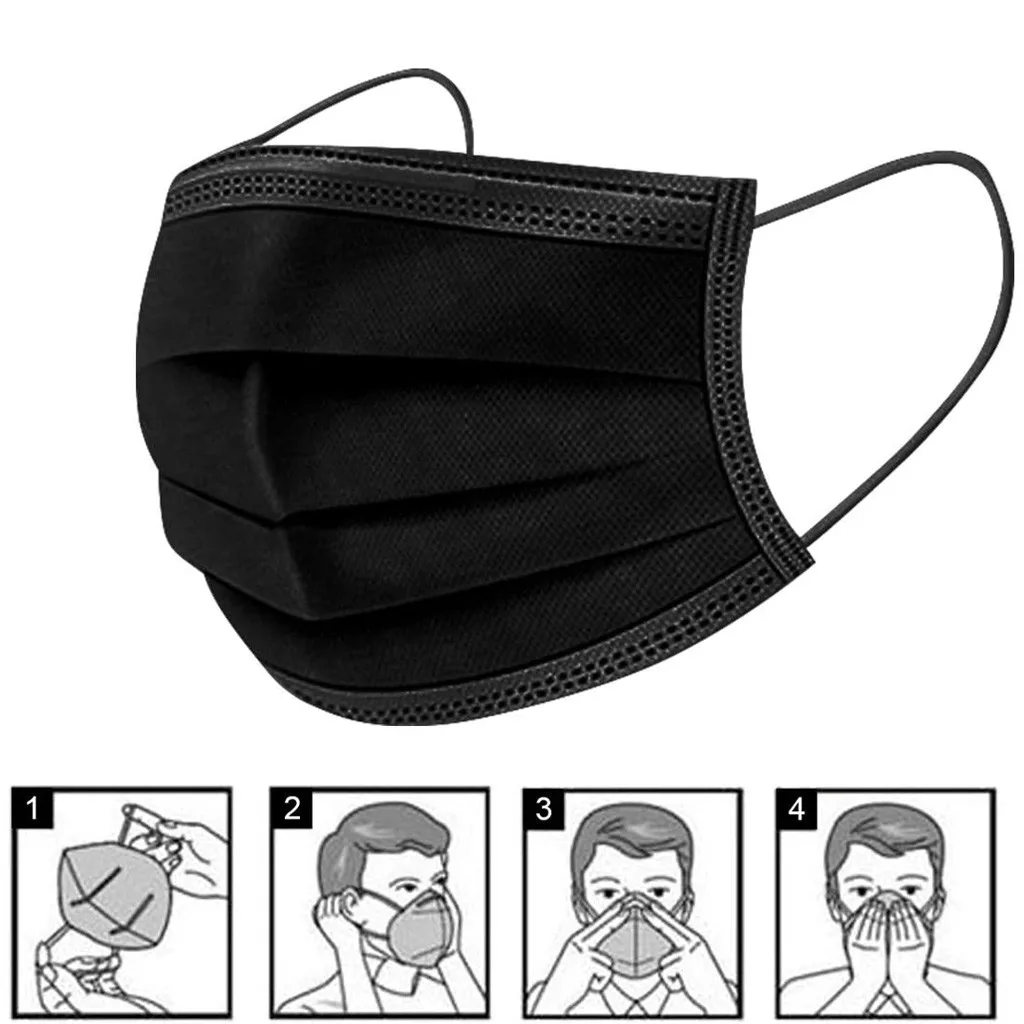 Одноразовая Черная защитная маска для взрослых от пыли и капель, 3-слойный фильтр, Нетканая маска для лица и рта