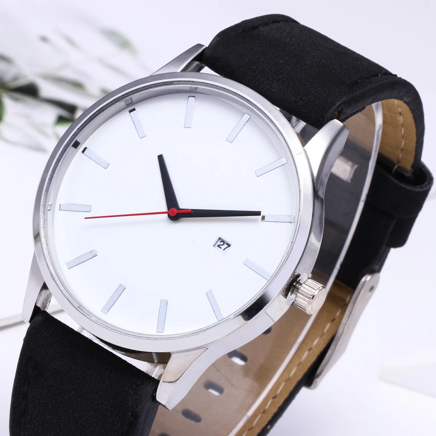 Модные мужские повседневные кварцевые деловые часы с календарем и большим циферблатом, часы для студентов, классические мужские часы с ремешком